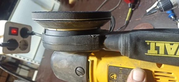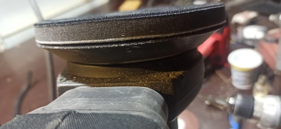 как на фото, но промежуточный материал между липучками так себе, очень нежный, приклеенной подошвой ставить на неровности нельзя, принимает эту форму да и на ровную лучше тоже не ставить, сминается. на полных оборотах если во время включения машинки сразу не прислонить к шлифуемой поверхности, то слетает как только машинка наберёт максимальные обороты, на фото она ещё новая, использованную пришлю позже, как окажусь на объекте