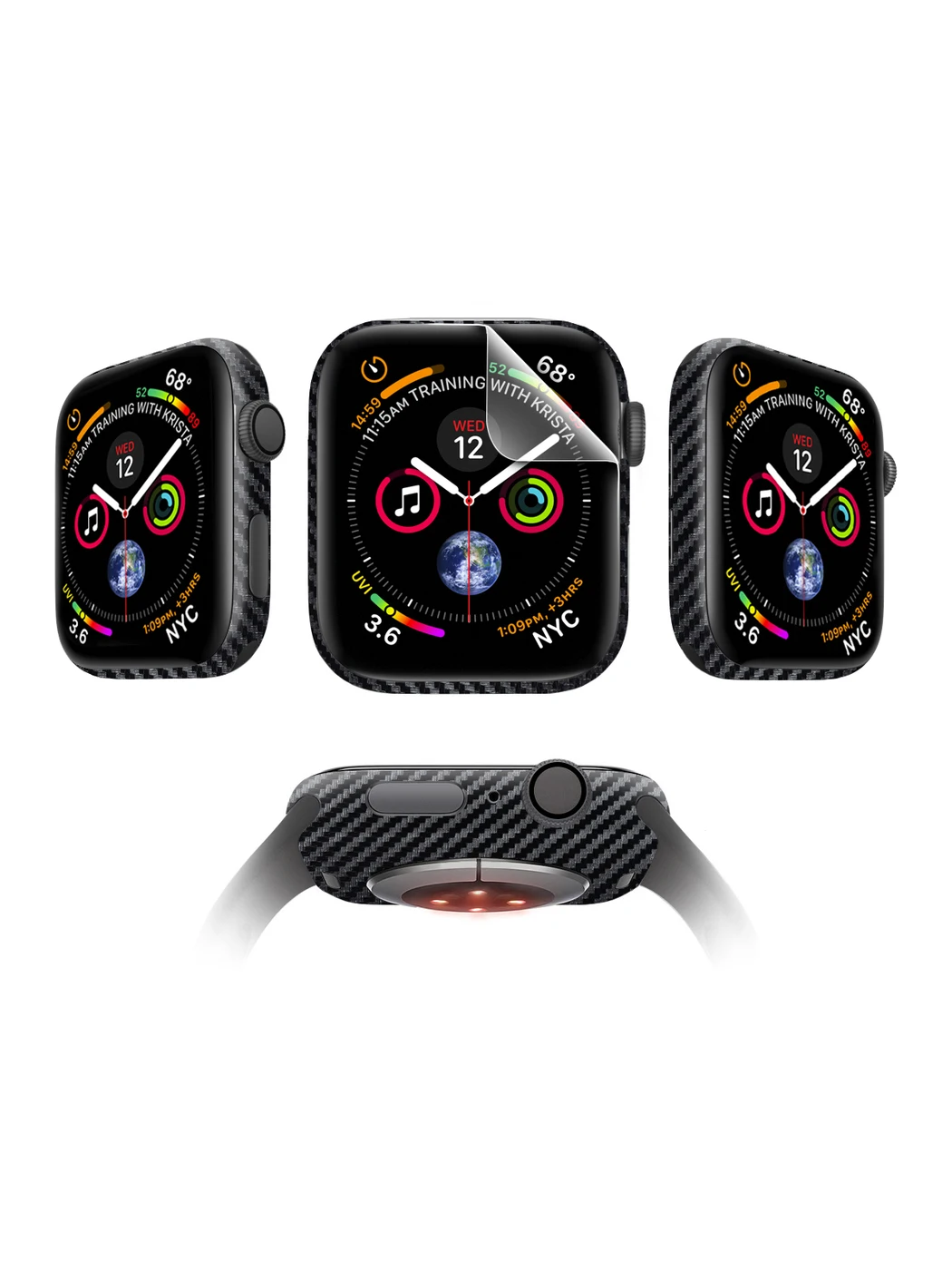 Комплект защитных пленок MOCOLL Apple Watch 44mm для дисплея Глянцевая (2шт) и для корпуса (2шт) Карбон Черный