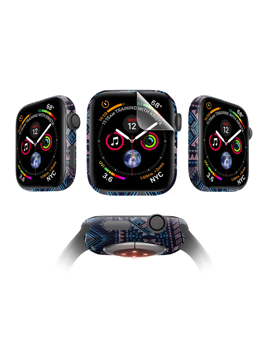 Комплект защитных пленок MOCOLL Apple Watch 44mm для дисплея Матовая (2шт) и для корпуса (2шт) Богемный узор Аргайл