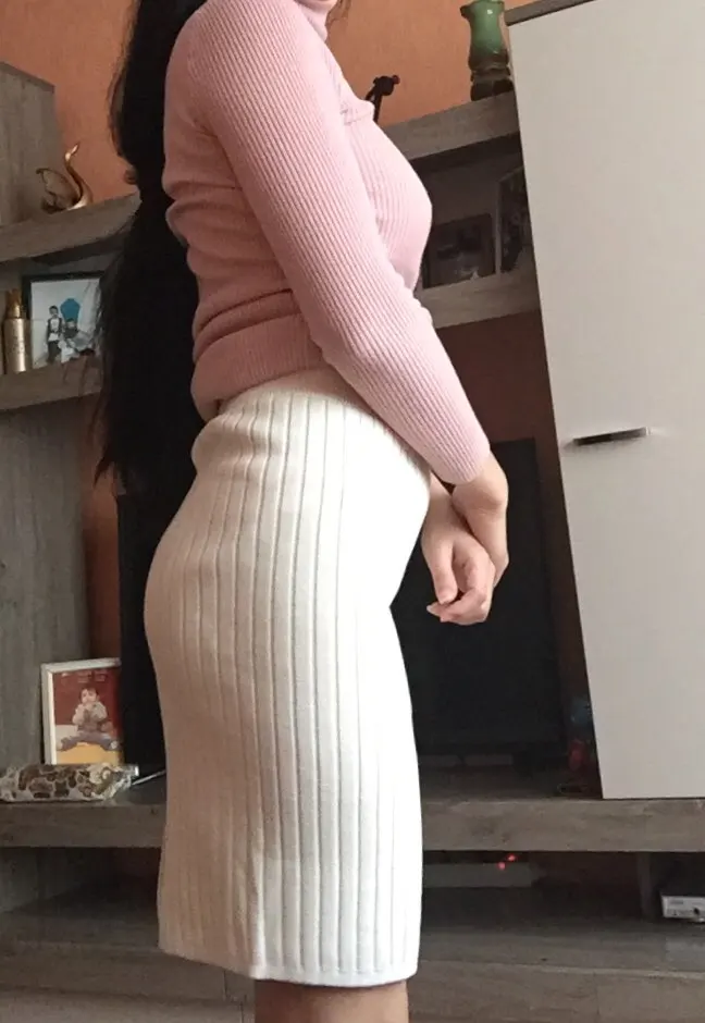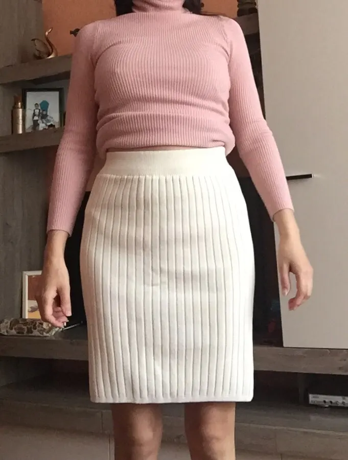 Как мне нравится эта юбочка!))) цвет очень хороший , как на фото у меня! На мои от 68 и об 93 размер s “ самое то резинка нисколько не жмет, юбка плотная. Я бы к низу немного с узила бы , да ладно зато ходить удобно! Сзади разрез .