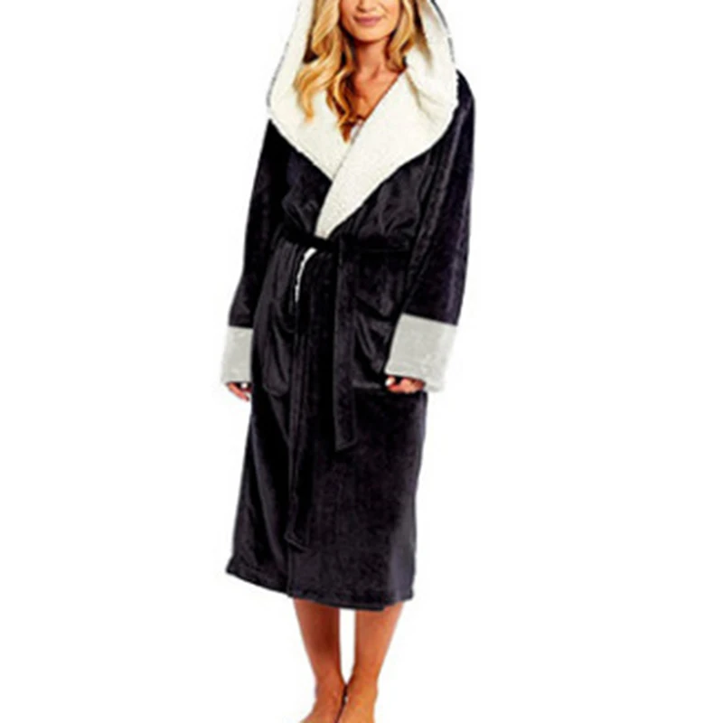 Зимний Халат с капюшоном и карманами, флисовый халат, женская одежд...