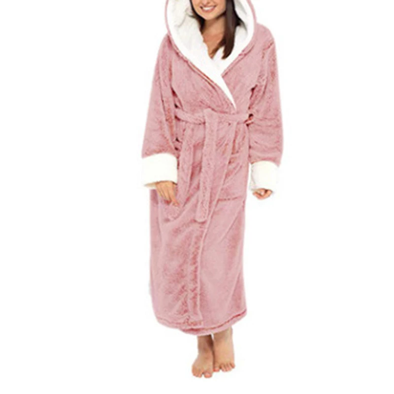 Женская ночная рубашка, длинный хлопковый Халат, зимний удлиненный плюшевый халат с длинными рукавами, теплая ночная рубашка, 2020