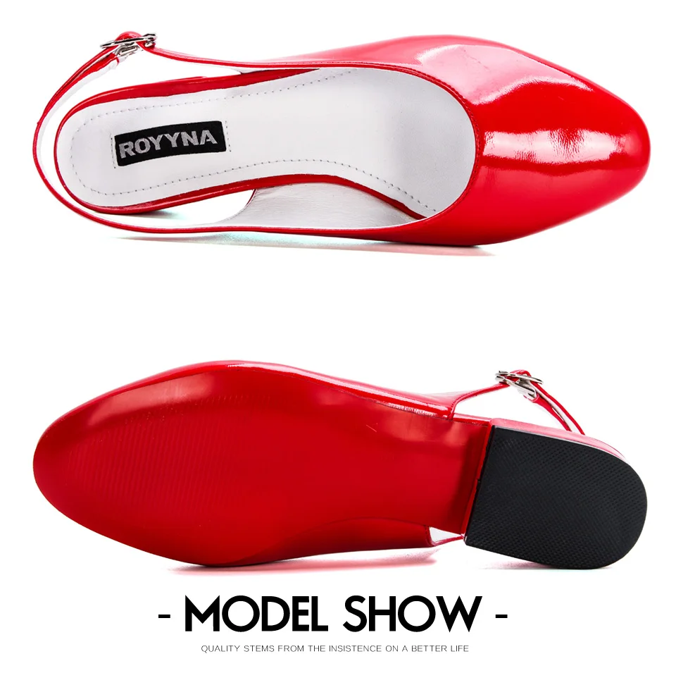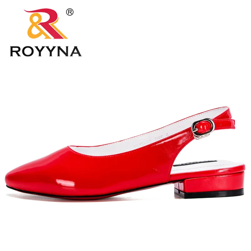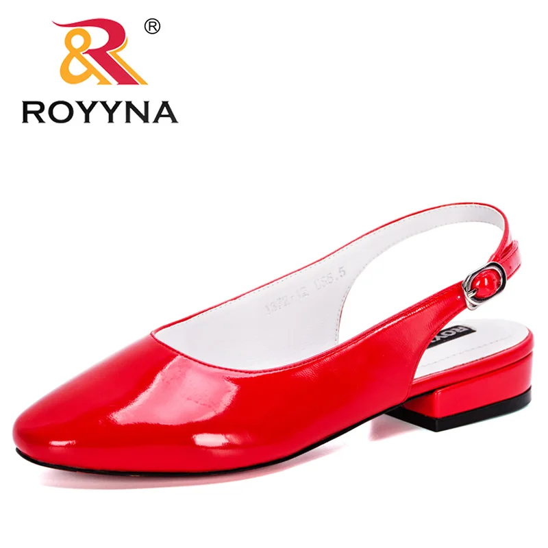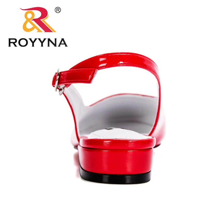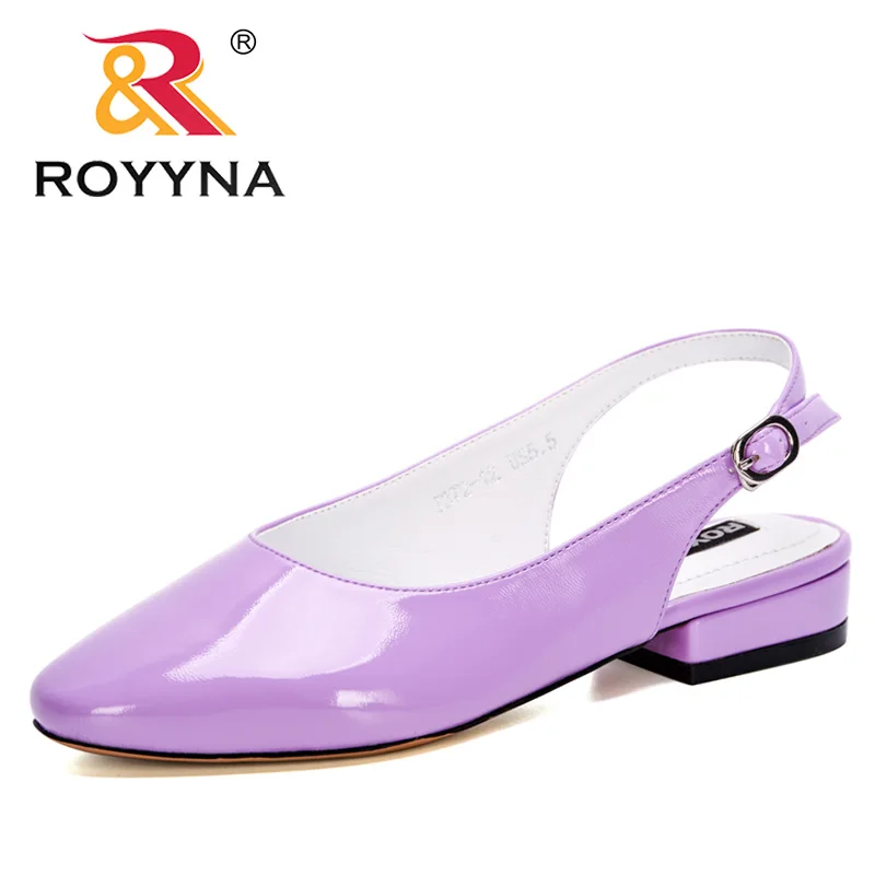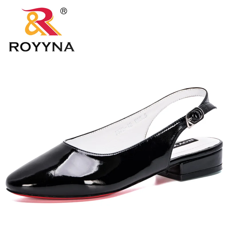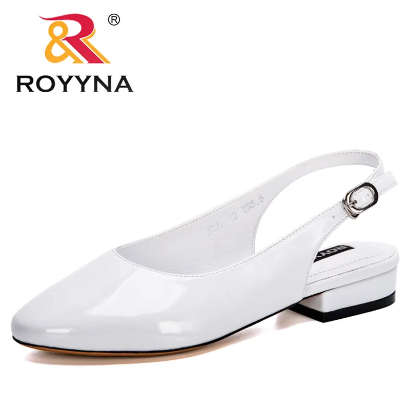 Женские мюли без застежки ROYYNA, элегантные сандалии с круглым носком, сланцы, на низком каблуке, тапочки с закрытым носком, 2020