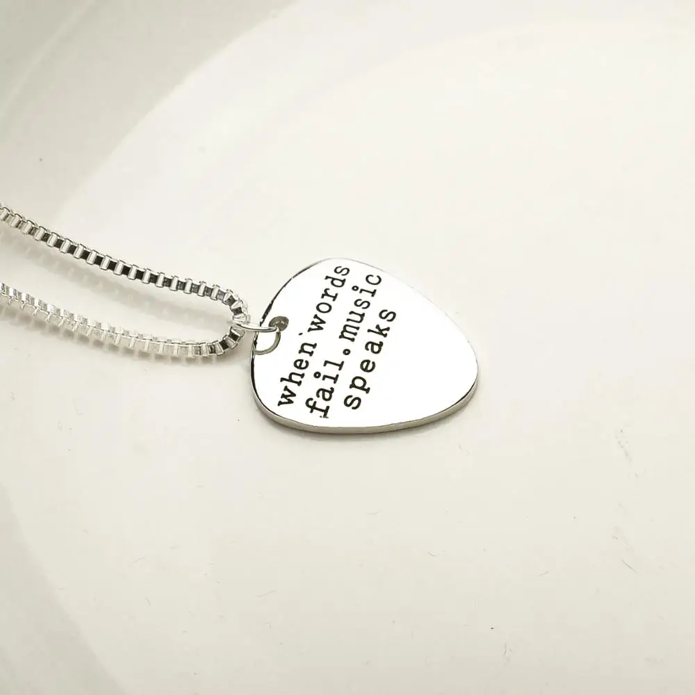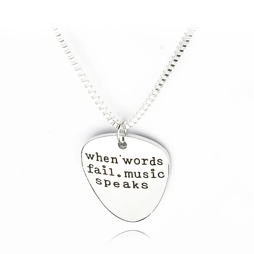 Ожерелье с надписью музыка говорит Рука штамп Гитара медиатор кулон...
