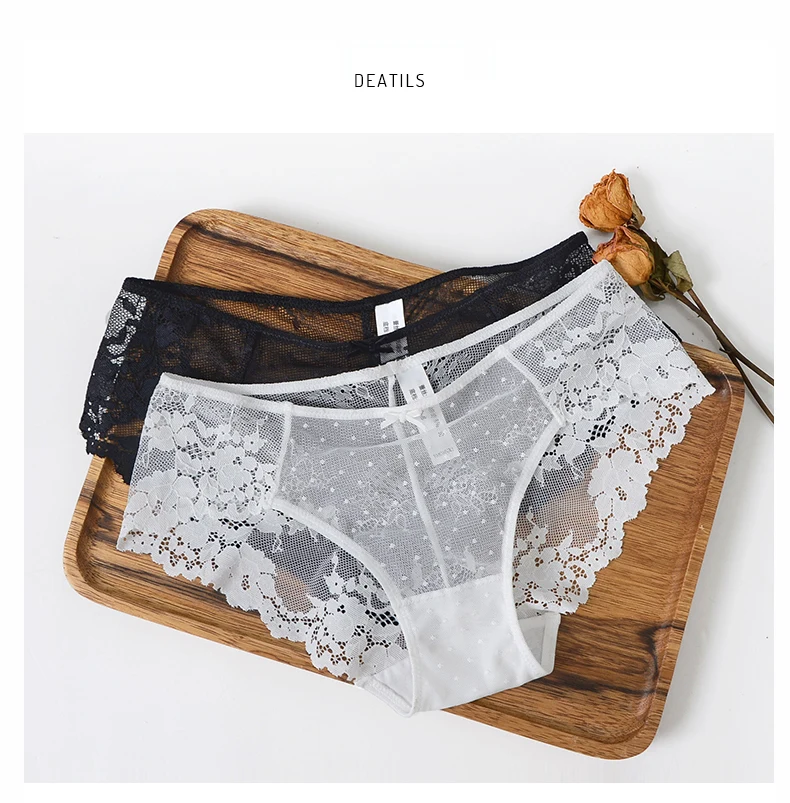 Трусики женские кружевные прозрачные в горошек, прозрачные