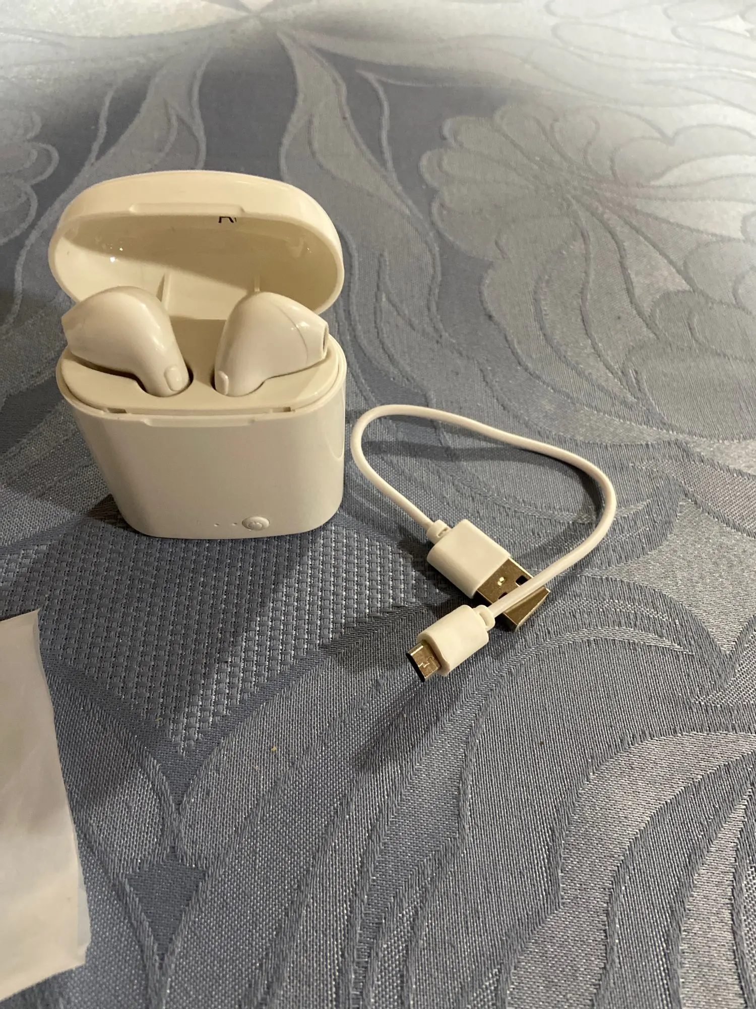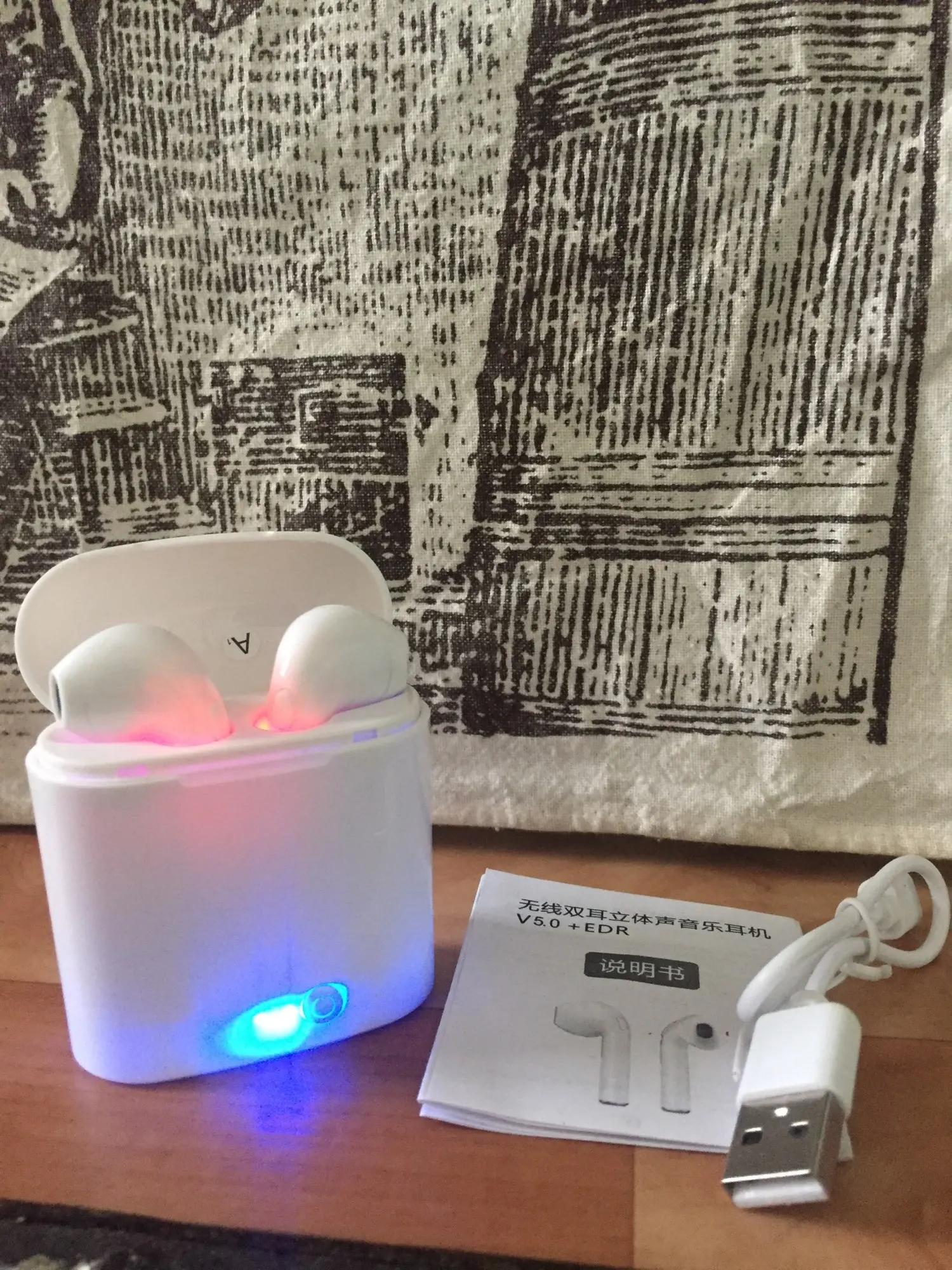 Наушники беспроводные.... работают, пришли заряженные даже). С айфоном конектятся, если вы ожидаете звук похожий на аирподсы, ваши ожидания напрасные)! Коробочка из тонкой пластмассы, гремит. В комплекте шнур для зарядки - 10 см. Вообщем свою функцию выполняют, разговаривать можно, ты слышишь и тебя тоже. Посылка шла почти 2 месяца, трек отслеживался не весь путь, только отправка и прибытие на почту.