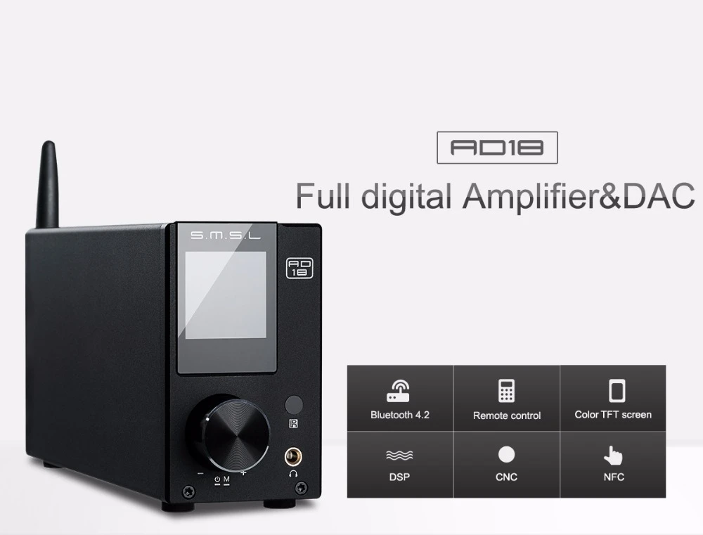 AD 18-это небольшой полный цифровой bluetooth-усилитель класса d, встроенный усилитель для наушников с поддержкой выхода сабвуфера. Подключите его к компьютеру и используйте для вождения наушников с помощью усилителя или для питания пассивных динамиков (динамик 4 Ом производит выходную мощность 80Wx2). Изысканный Матовый алюминиевый корпус уменьшает помехи. Запатентованный звук сабф и регулировка высоких и низких частот +-8. Независимая конструкция усилителя для наушников и передовая технология DSP делают устройство более желательным.