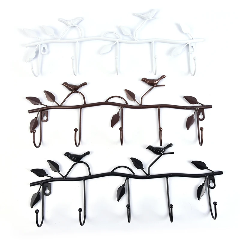 Железные птицы листья 5 крючков белые крючки для одежды дверь ванна...
