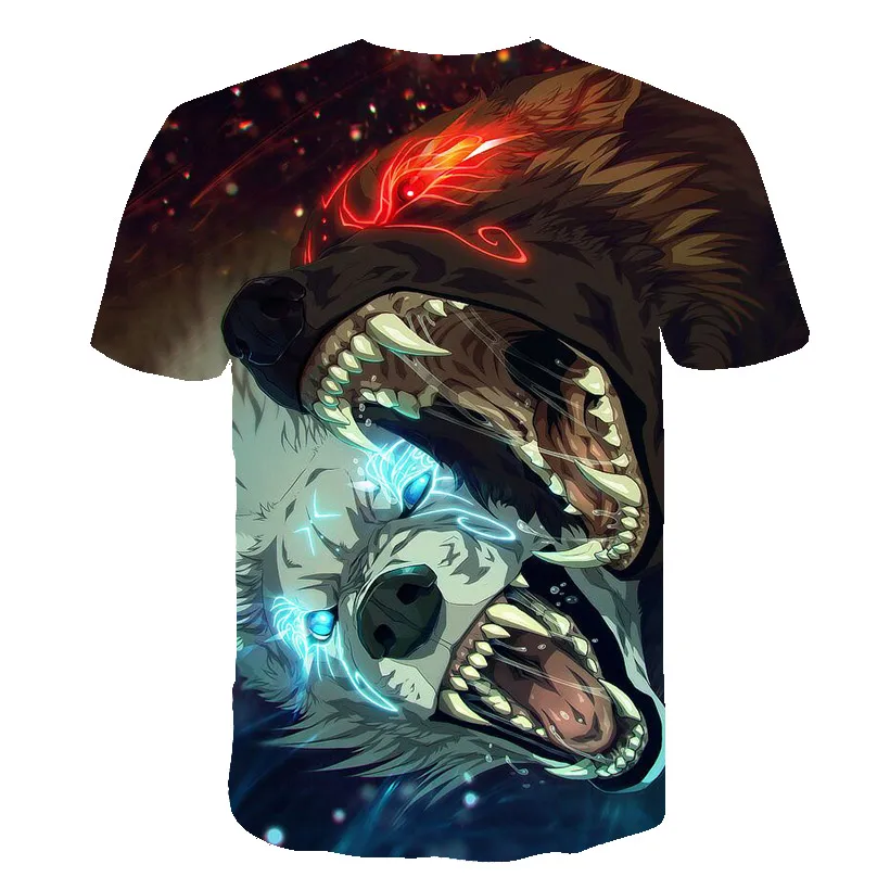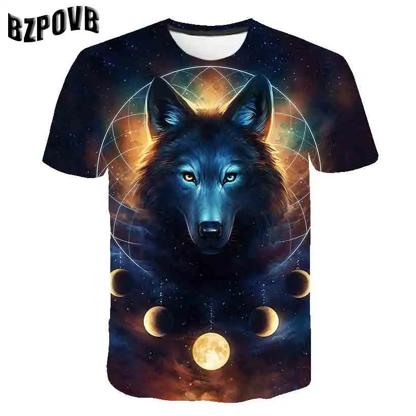 Новинка 2020, крутая футболка, рабочая Мужскаяженская футболка с коротким рукавом и 3d рисунком животных, волков, с круглым вырезом, летние топы, футболки для мужчин