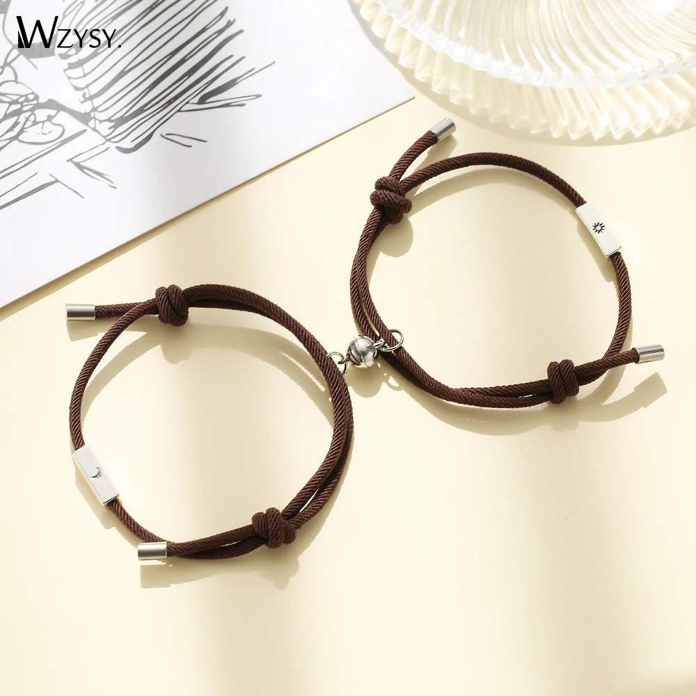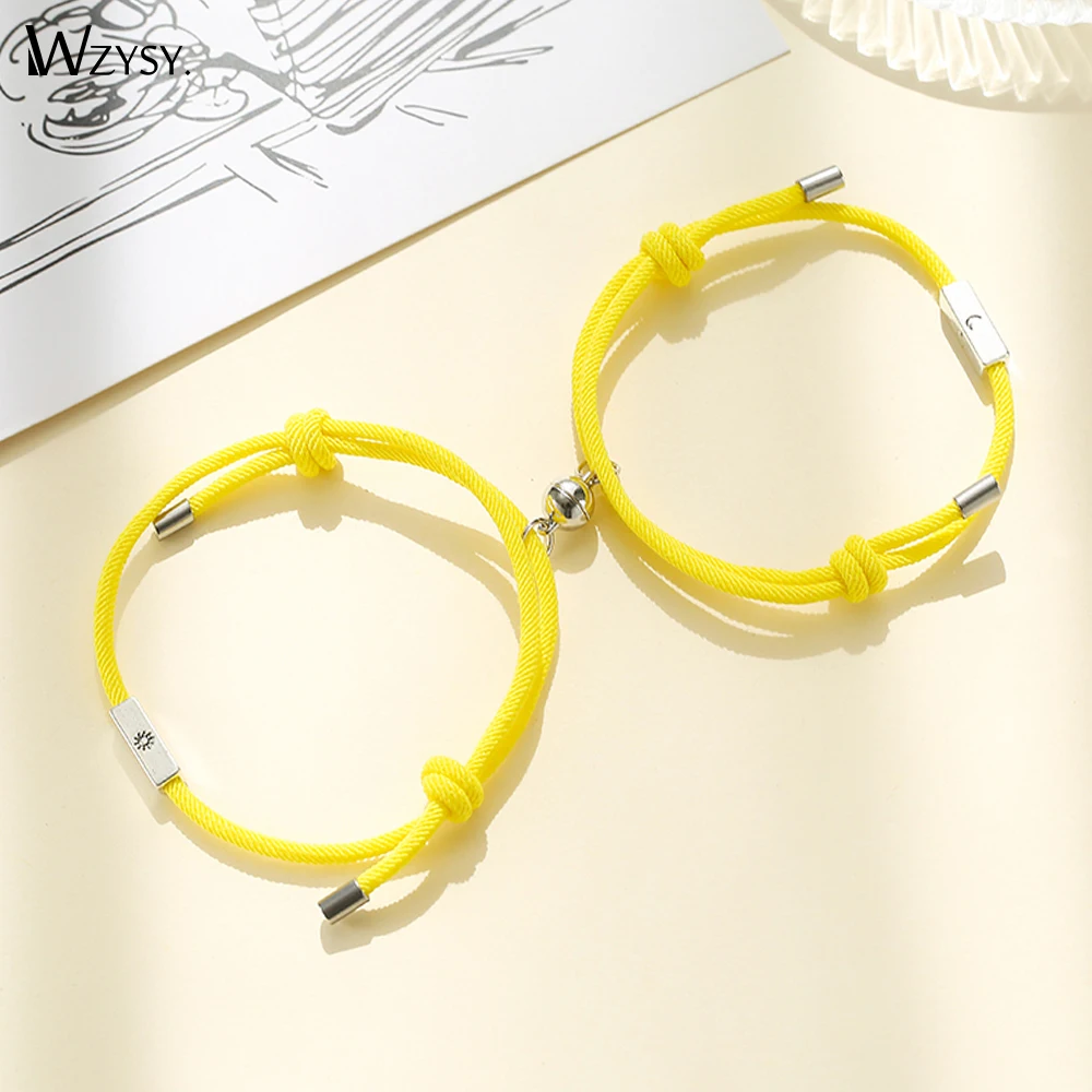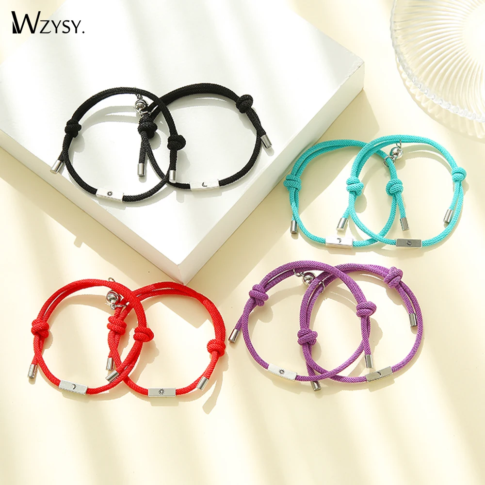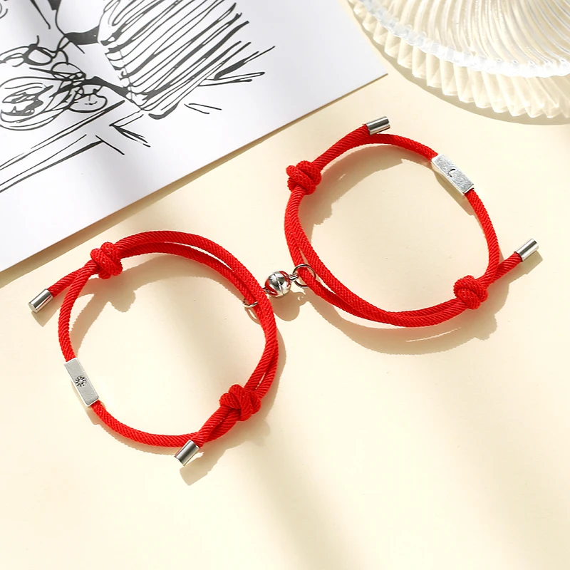 2 шт.компл. солнце и луна Шарм Регулируемый магнитный браслет для пары браслеты из красной веревки подарки для мужчин и женщин, ювелирные изделия