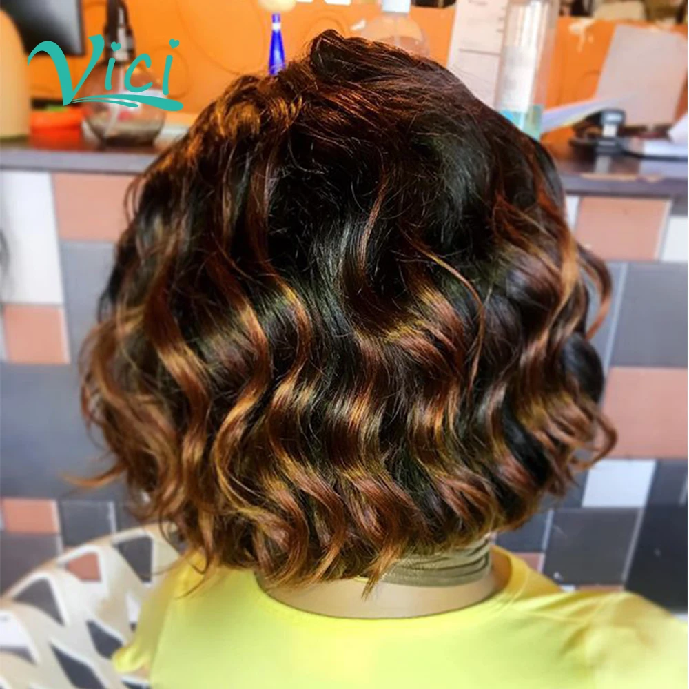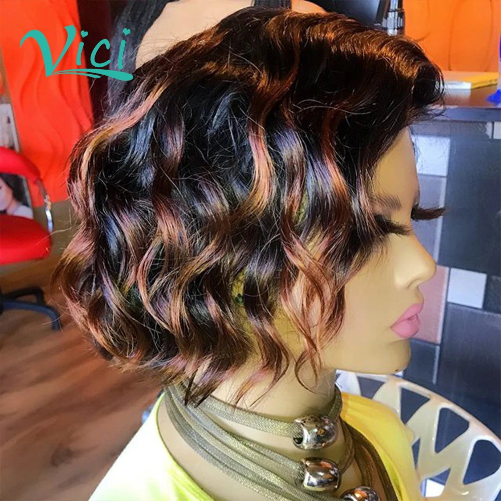 Выделяющий парик, человеческие волосы для чернокожих женщин, волнистый парик на шнурке, предварительно выщипанные, с детскими волосами, короткий парик для стрижки Пикси, 150%