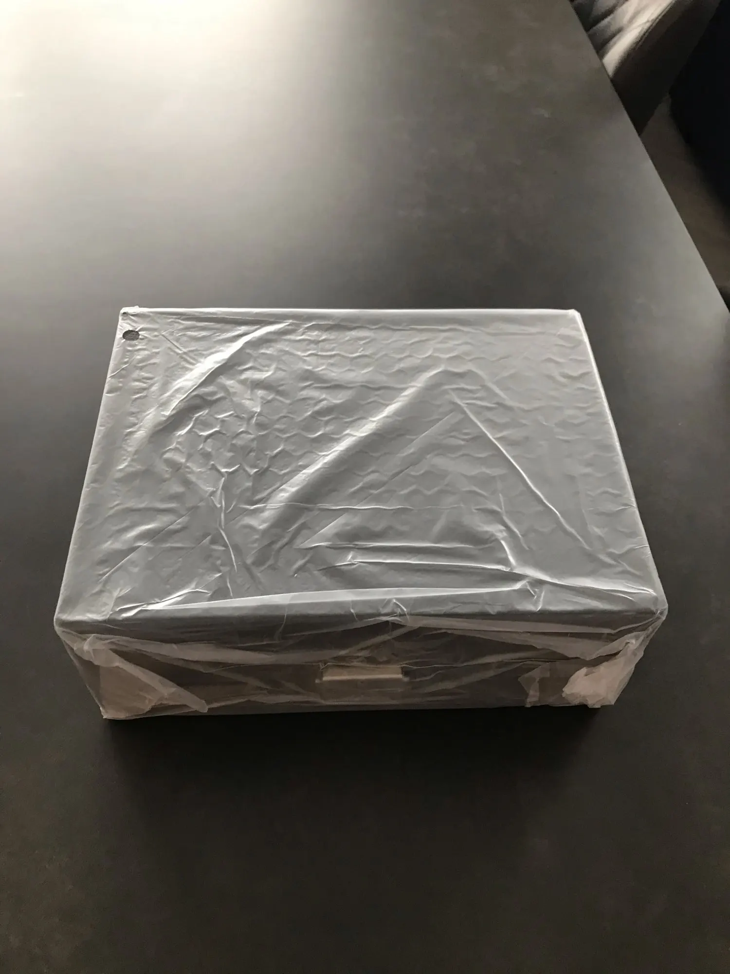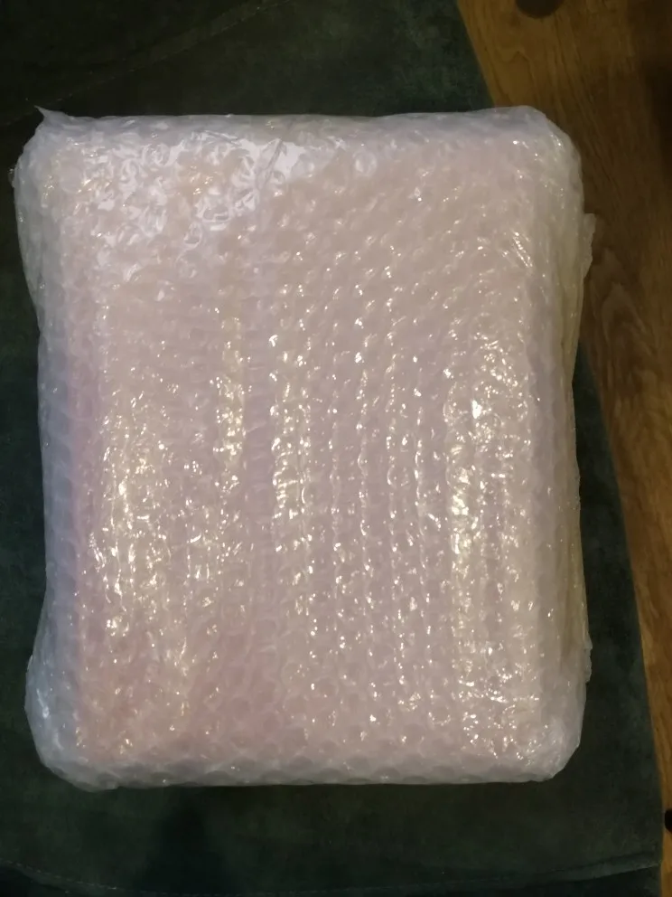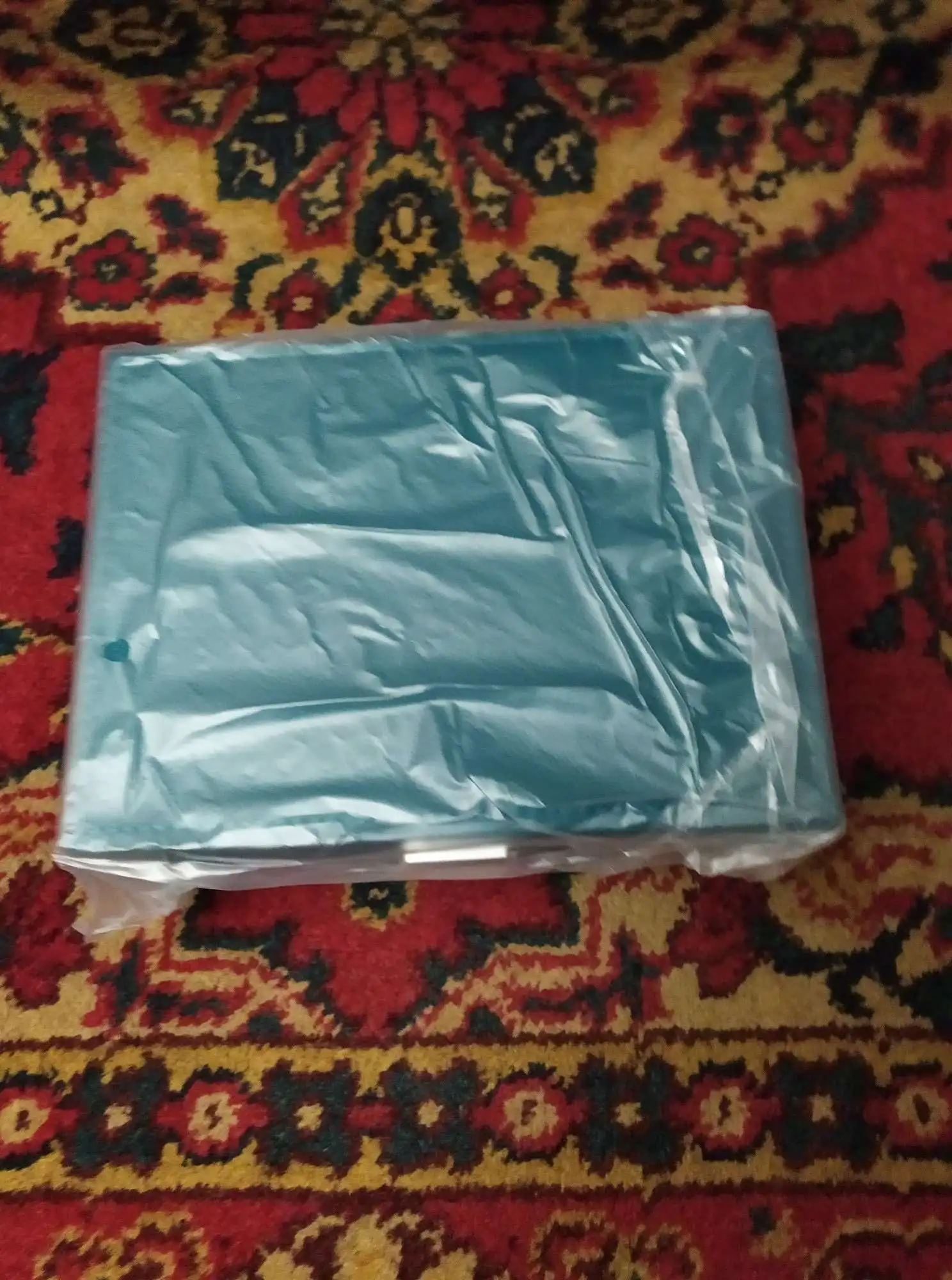 Очень быстрая доставка-всего 10 дней!!! Упаковано на совесть, в тройную пупырку. Товар оправдал ожидания. Есть небольшой огрех (трещинка материала на углу крышки), есть запах. Но все это не критично и не повлияет на удобство эксплуатации. Я довольна покупкой, продавец положил в подарок две резиночки, очень мило.