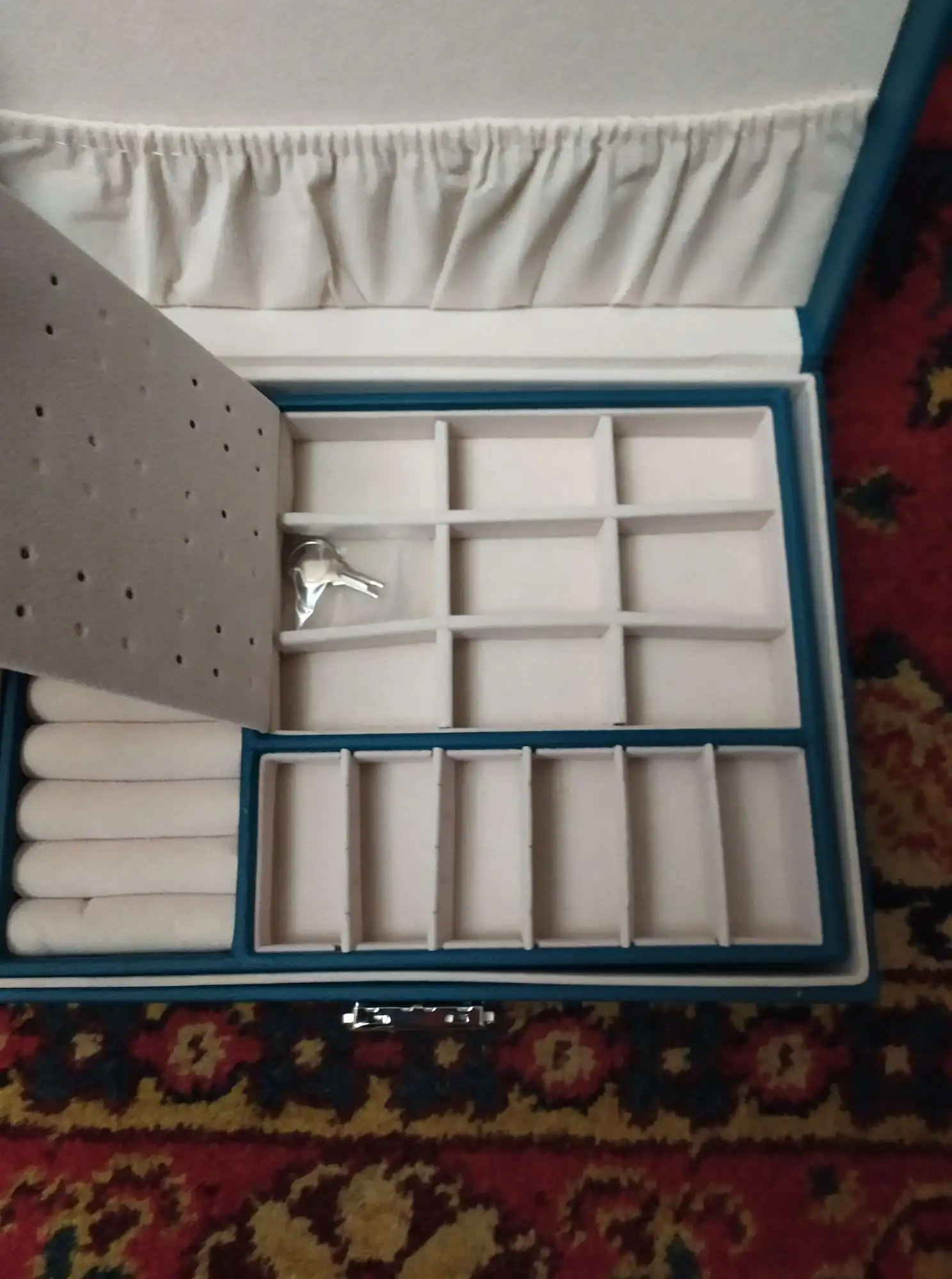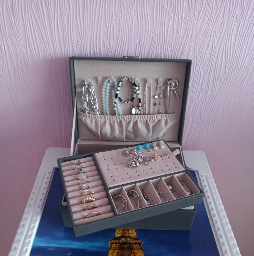 Я в восторге. Из кучи коробочек, все компактно и очень удобно для обзора и выбора уместилось в одну! Всем рекомендую, украшения валяются, про них порой забываешь, а здесь так удобно - открыл и выбирай!