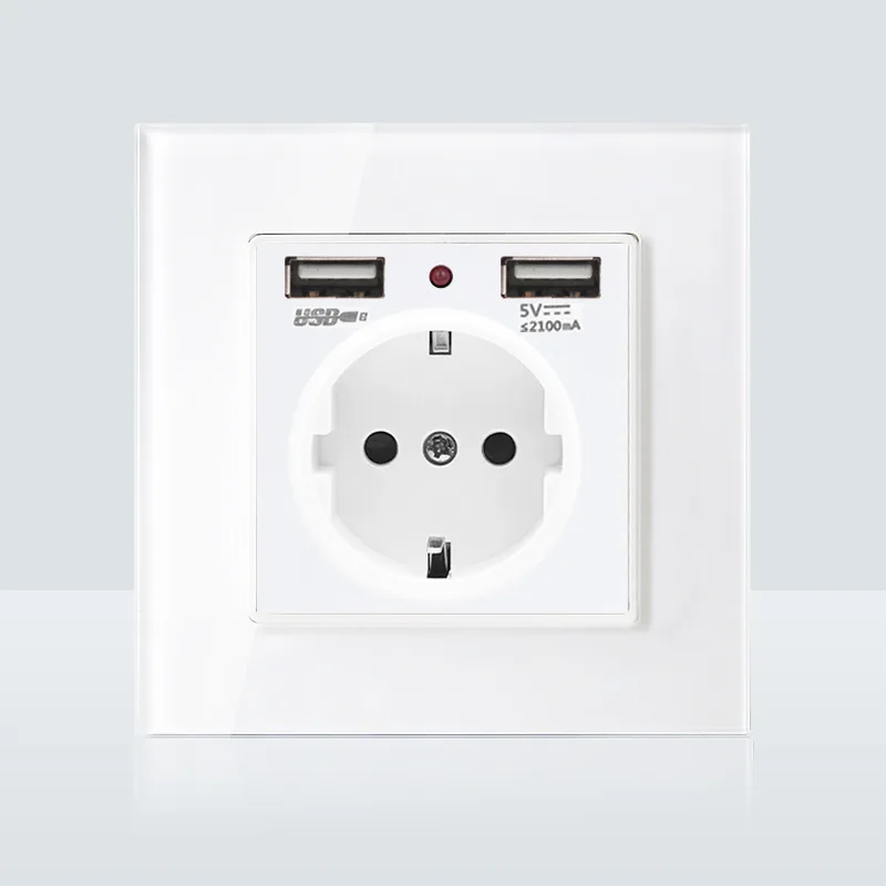 Питание зарядки розетка с USB Белый Стекло Панель 2A Dual USB Порты и разъёмы стены Зарядное устройство адаптер переходник для розетки ЕС розетка Pow