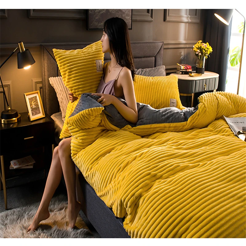 Комплект постельного белья, коралловый, бархатное лоскутное одеяло, плотный, однотонный, сохраняющий тепло, одеяло для кровати, мягкое постельное белье в скандинавском стиле
