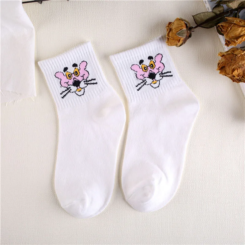 1 пара японский Kawaii женские животных носки без пятки милые яйцо кролика пантера длинные хлопковые носки для женщин и женские туфли-лодочки; Цвет РОЗОВЫЙ, молочно-белого цвета, носки