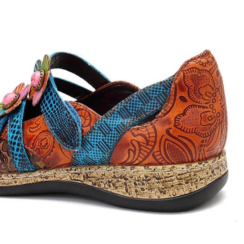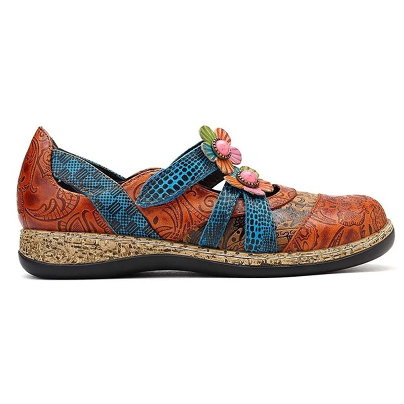 Туфли женские из натуральной кожи, винтажная повседневная обувь на плоской подошве, с цветочным принтом, цветные, с прострочкой, на липучке, Лолита, весна