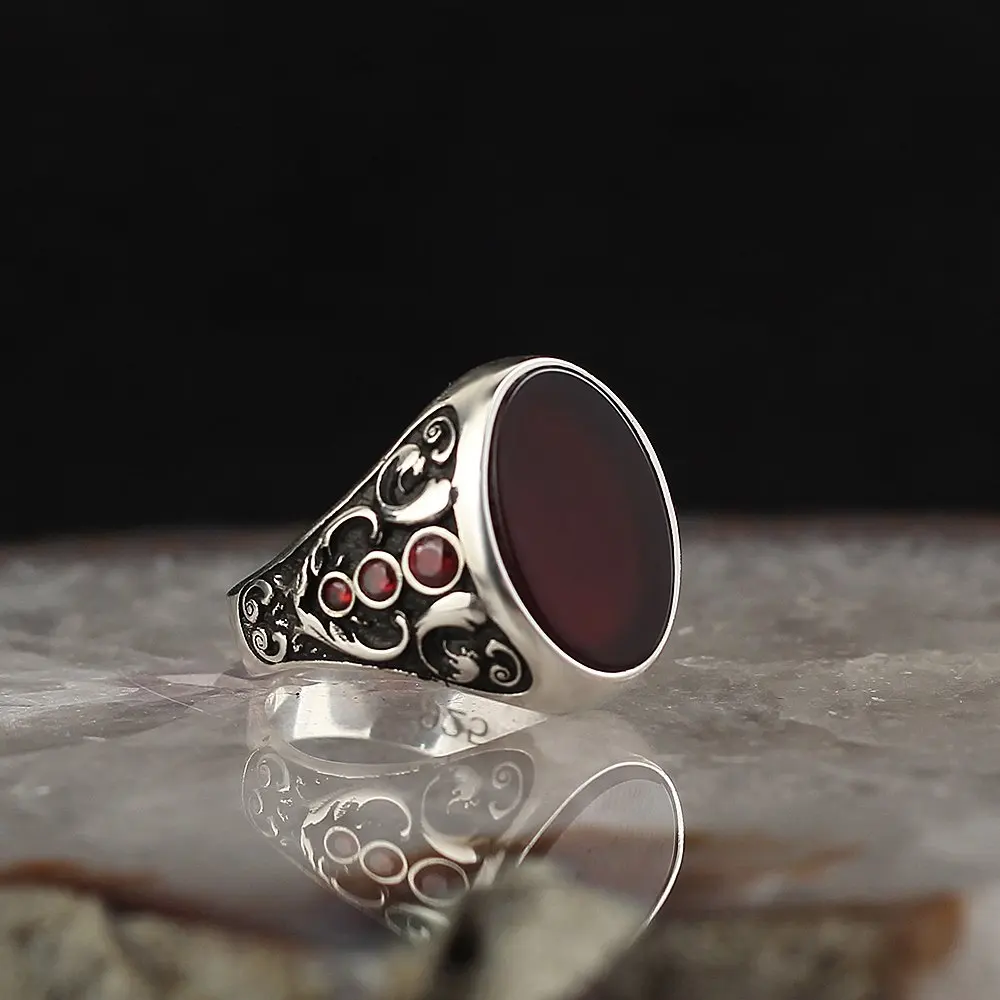 925 Серебряное кольцо для мужчин Исцеление Агат Камень Подарочный винтажный мужчин ювелирные изделия для женщин, все Размеры женские Турецкая ювелирные изделия