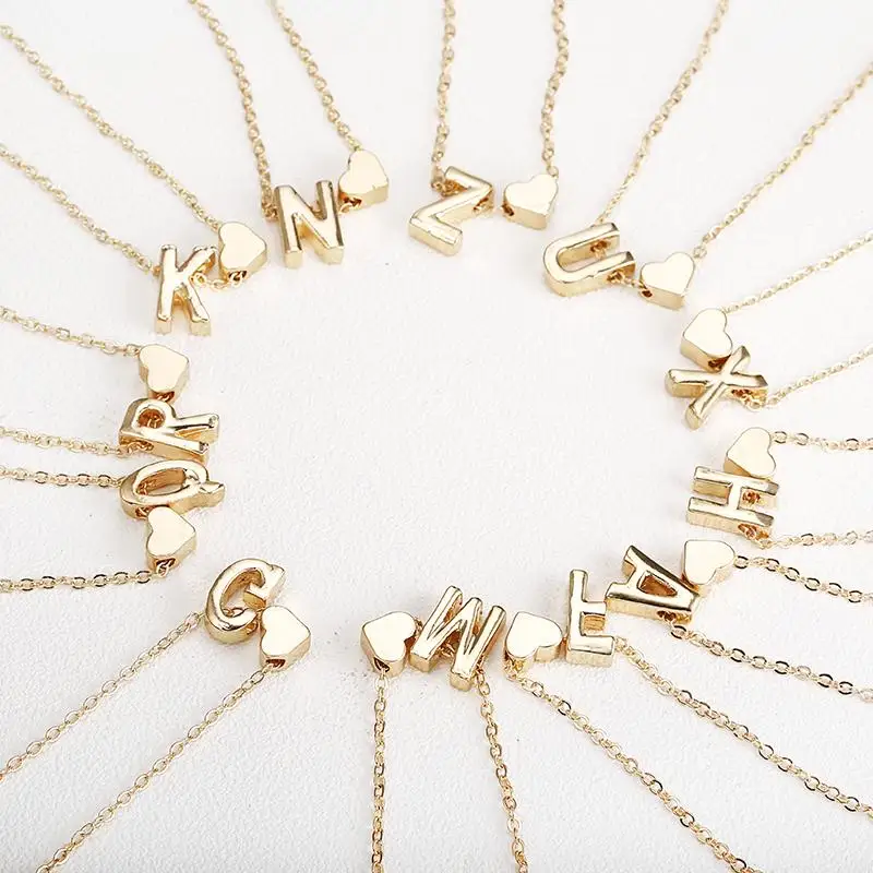 Рисунок сердечко; С инициалами насквозь кулон ожерелье для мужчин женщин 26 ожерелье с буквами подарки для пар Золотой Цвет Свадебная вечеринка ювелирные изделия ожерелья