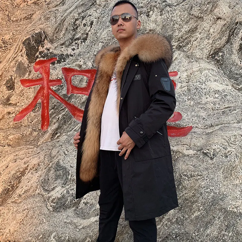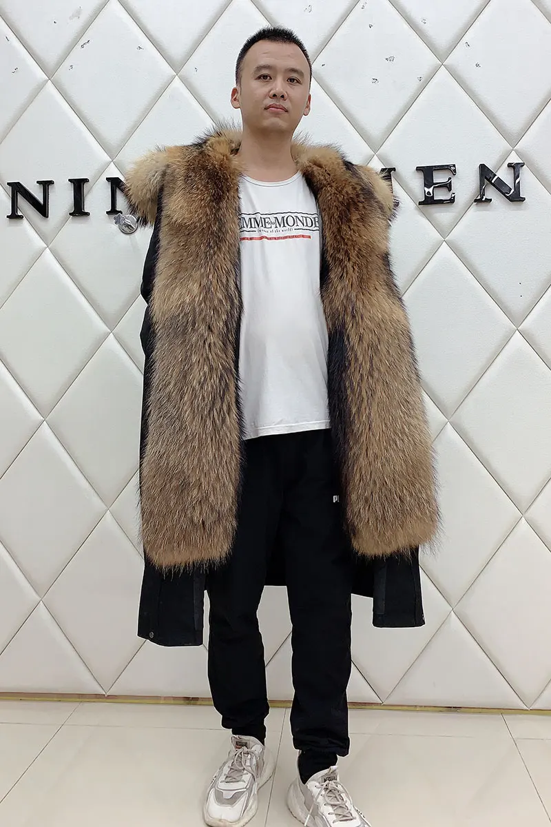 Мужские парки, пальто, куртка из натурального меха енота, зимняя мо...
