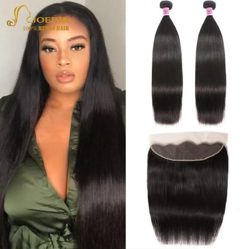 Прямые пучки с фронтальной 100% человеческими волосами jodc, 3 пряди с застежкой, бразильские пупряди волос с застежкой