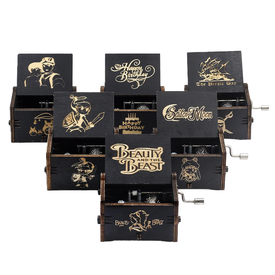 Хит продаж, деревянная музыкальная шкатулка с ручкой, Черная Короле...