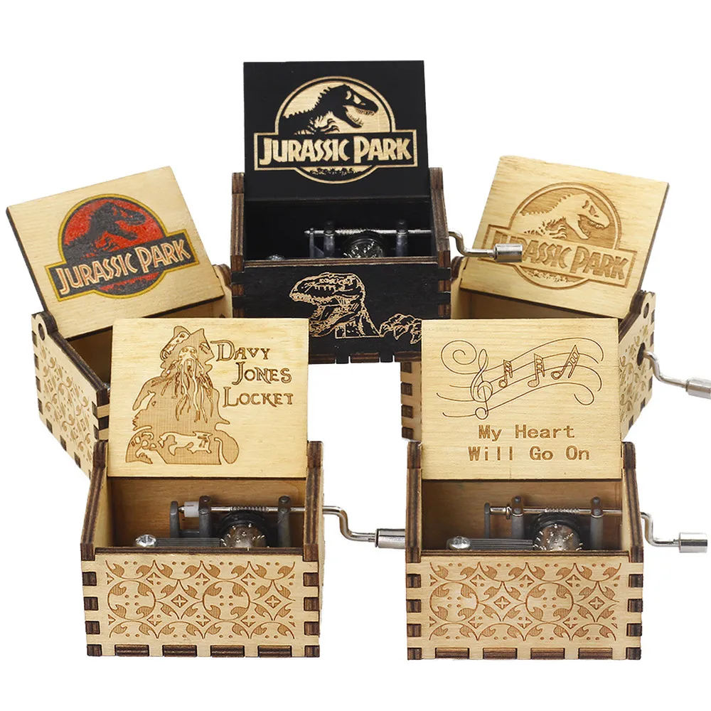 Анонимная резьба по дереву ручной работы богемная рапсодная черная музыкальная шкатулка для парка Юрского периода детские подарочные наборы на Рождество и день рождения