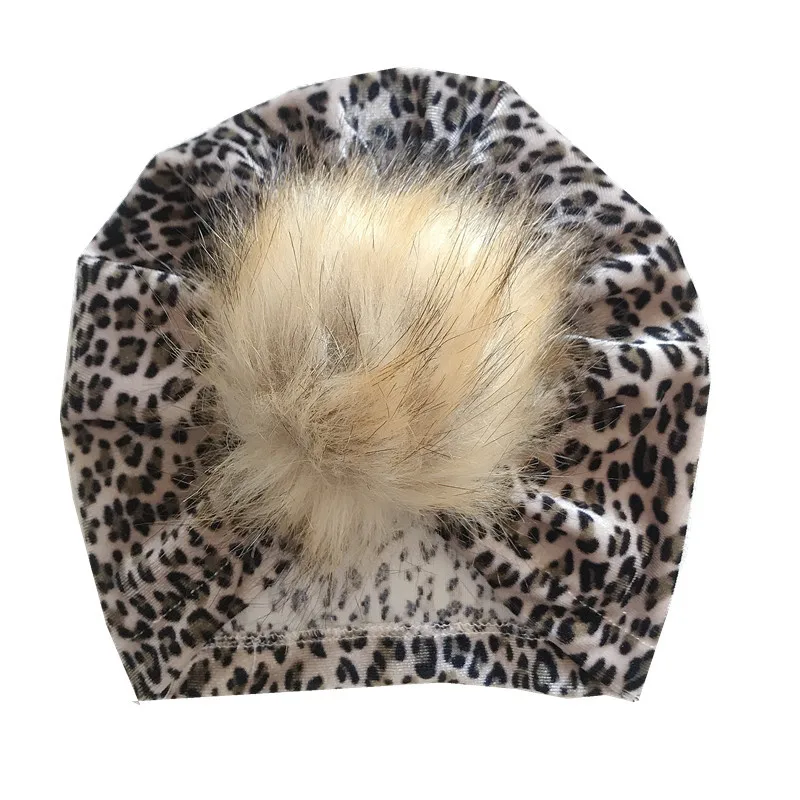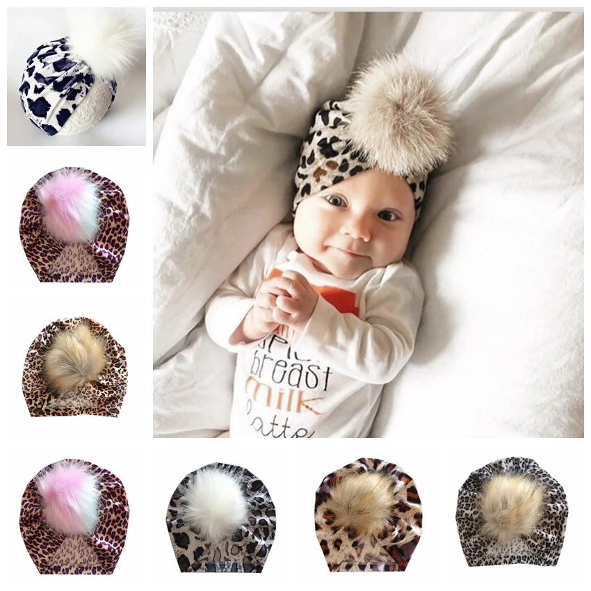Новый леопардовым принтом шляпа с милыми пушистыми помпончиками для детей для новорожденных, младенцев, детей ясельного возраста хеджирования Шапка-тюрбан блестящие для маленьких девочек головные повязки фото-реквизит