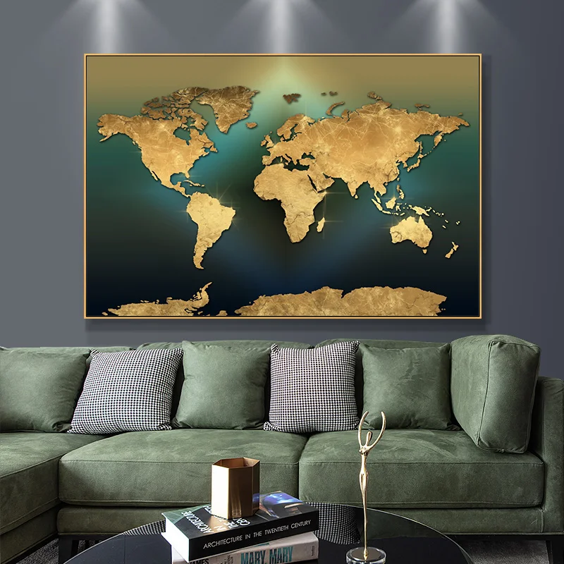 Современная Карта мира, Картина на холсте, Скандинавская Золотая зе...