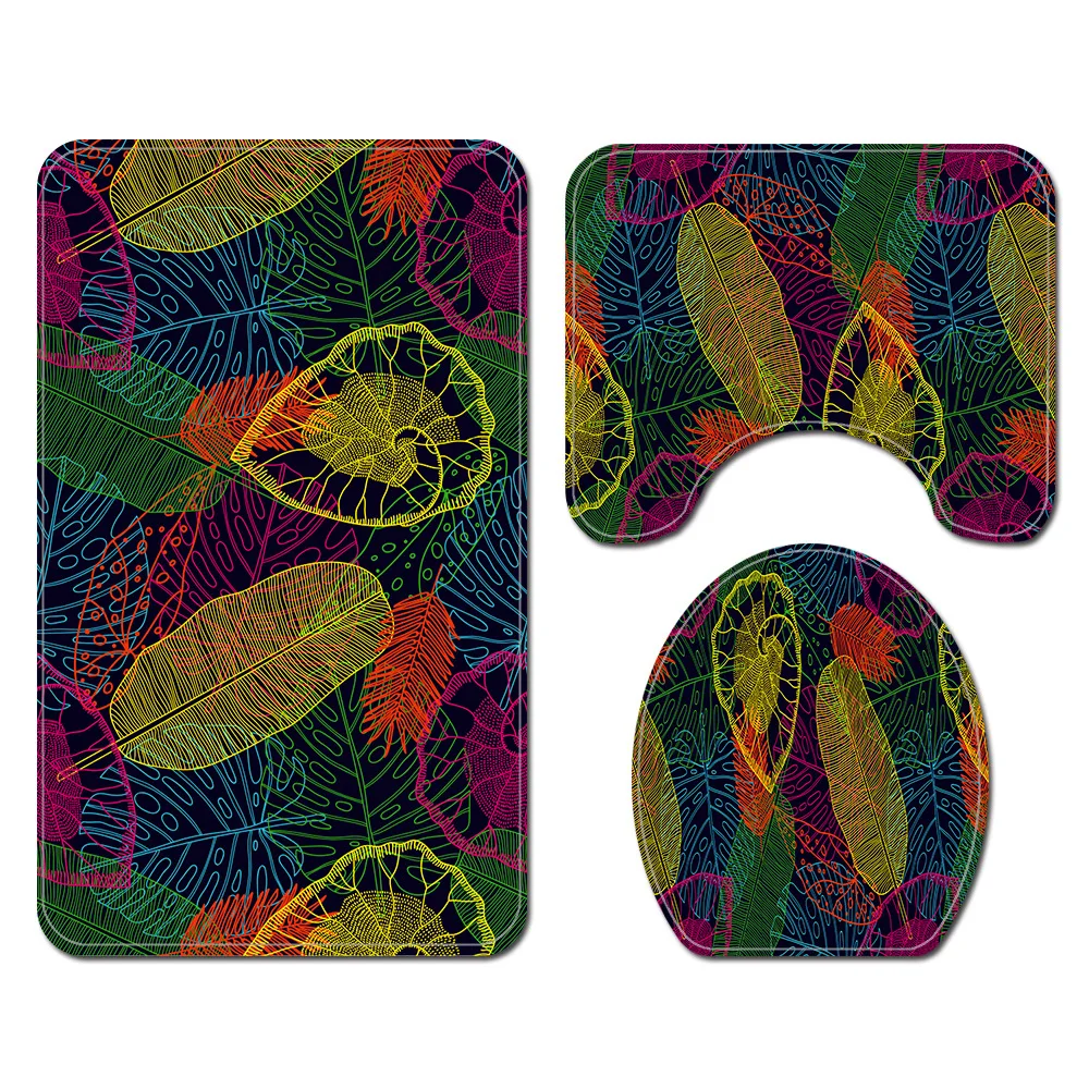 Коврик для ванной и душевая занавеска с узором листьев, коврик для ванной, нескользящий коврик для крышки сиденья унитаза, впитывающий напольный коврик для душа