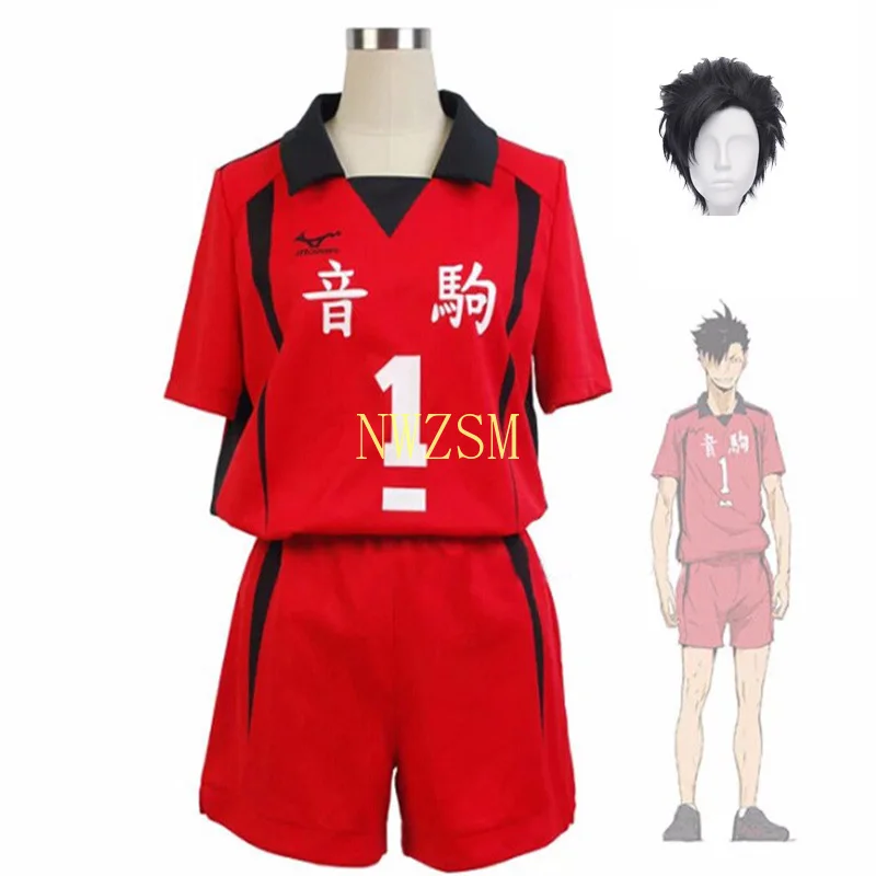 Костюм спортивной формы Kuroo Tetsurou, Haikyuu Cosplay Костюм из аниме некома, для Волейбольного клуба, футболка, трикотажный парик