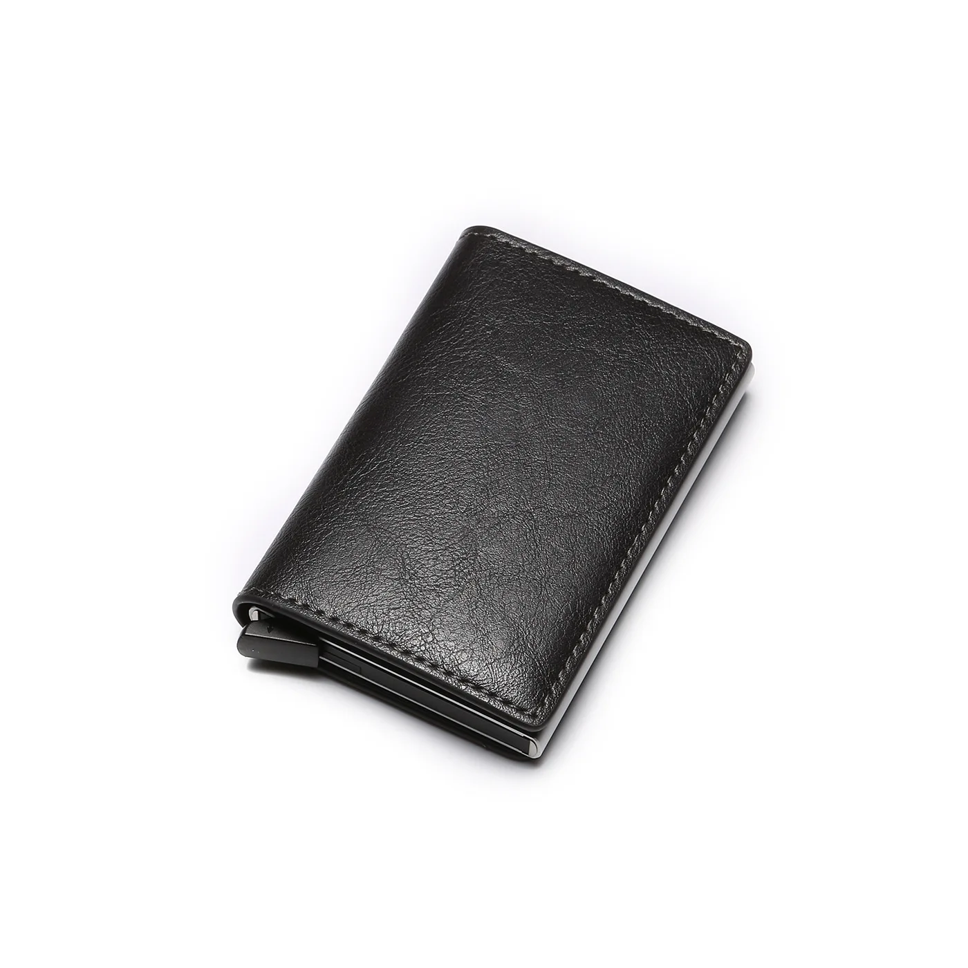 Модный Мужской винтажный кошелек для кредитных карт, блокирующий кожаный бумажник с рчид, модный металлический кошелек с защитой информации, держатель для карт
