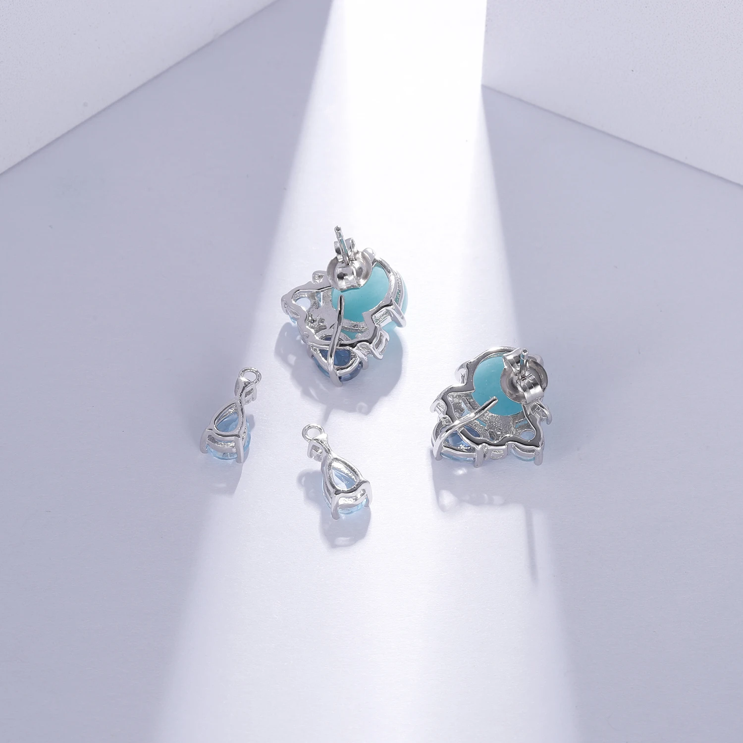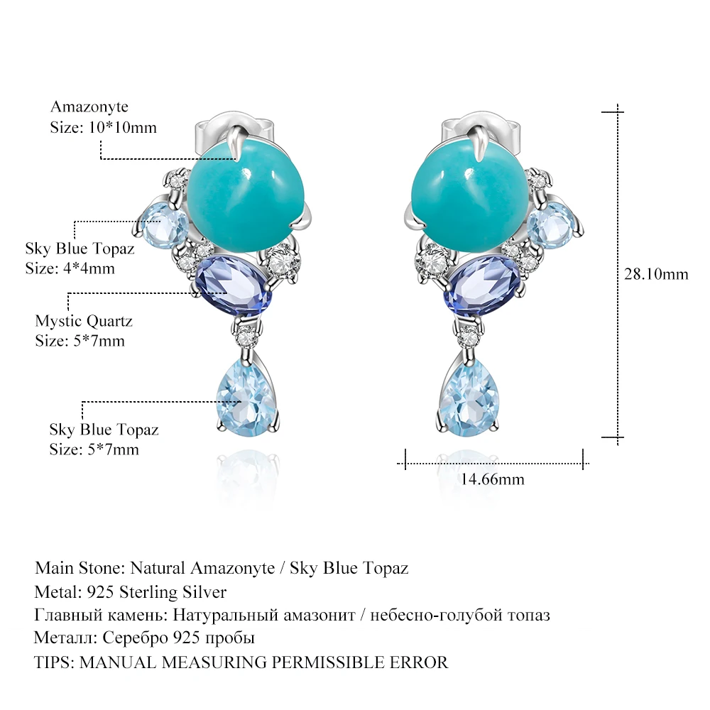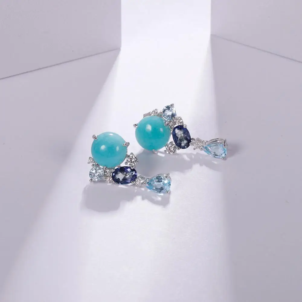 Женские серьги-подвески с голубым топазом, из серебра 925 пробы