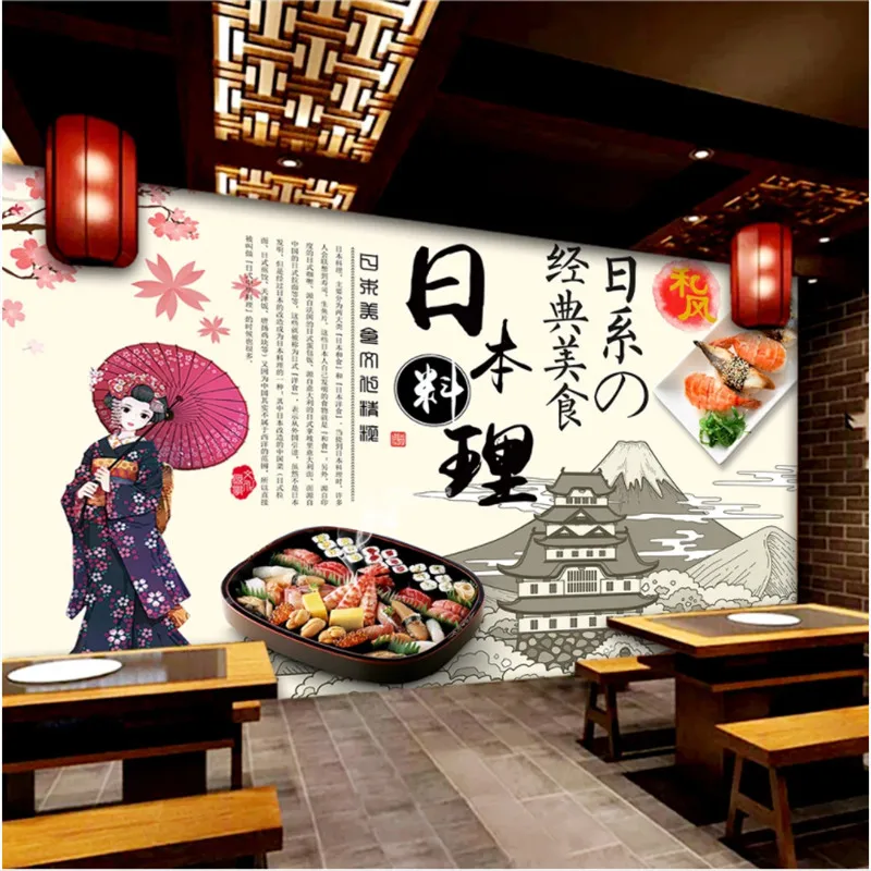 Ручная роспись Япония Знаменитые Достопримечательности настенная бумага 3D кимоно красота японская кухня суши Ресторан промышленный Декор настенная бумага
