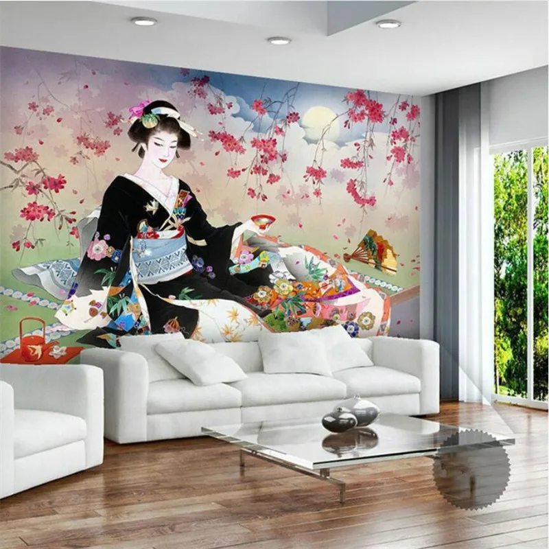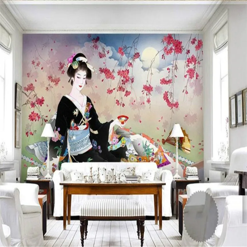Пользовательские размеры 3D японский стиль Ukiyo-e Гейша Сакура настенная бумага 3D суши Ресторан Izakaya отель татами Декор настенная бумага 3D