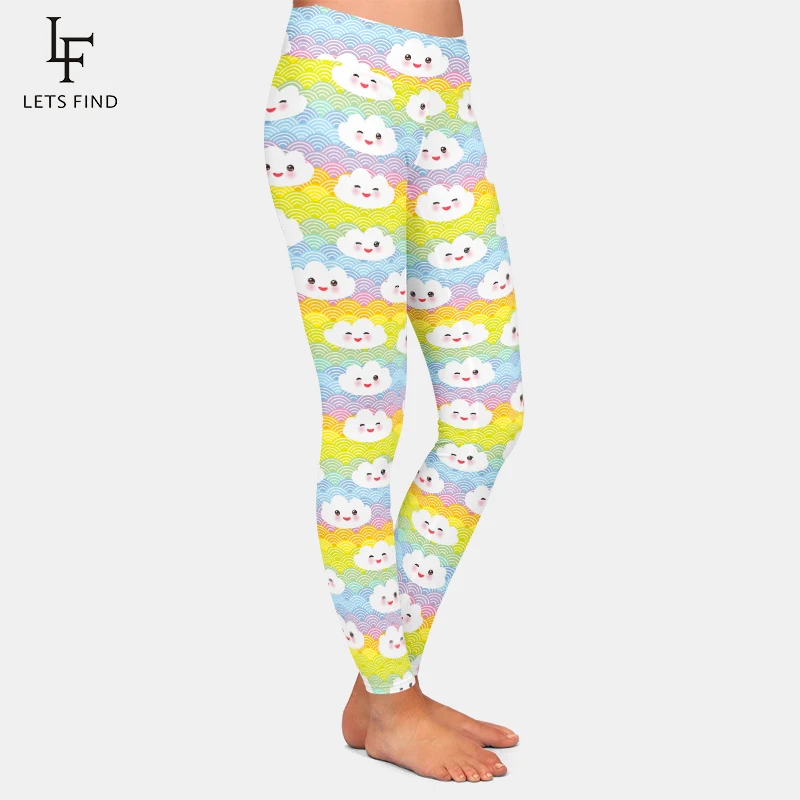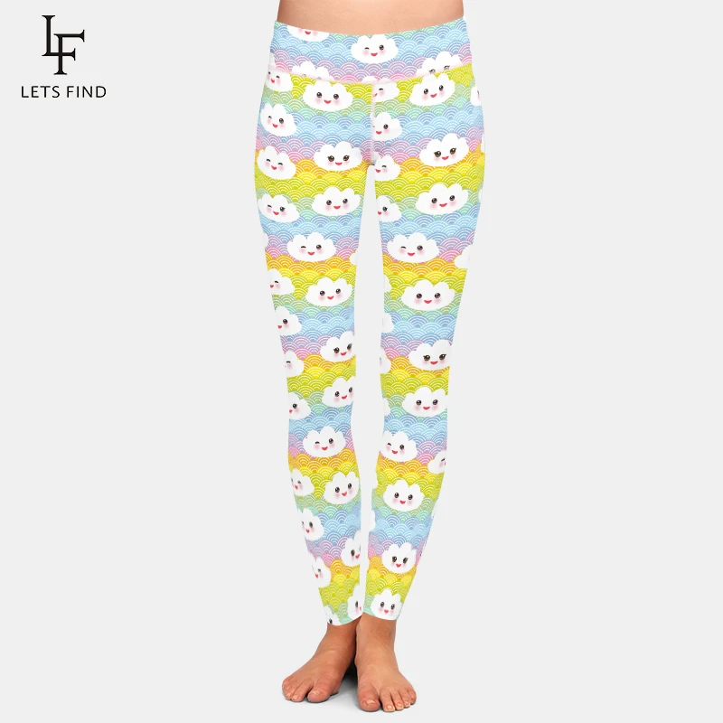 LETSFIND 3D Kawaii интересные женские зимние брюки с принтом облаков, модные женские эластичные леггинсы с высокой талией для фитнеса