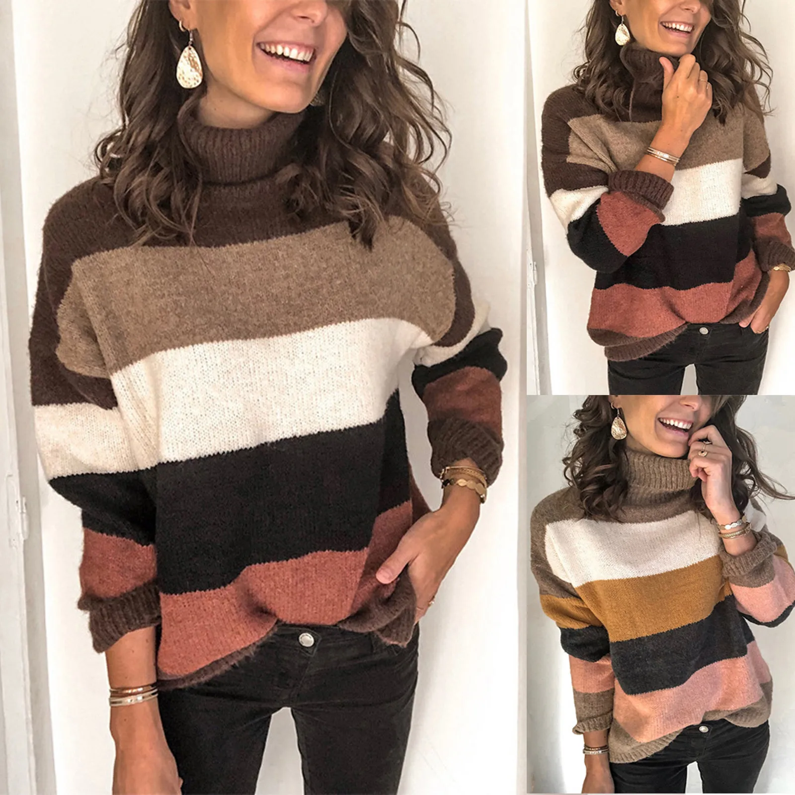 Детский свитер; Повседневные женские модные с высоким воротом Длинные рукава трикотажный пуловер водолазки для женщин sueter de moda 2020