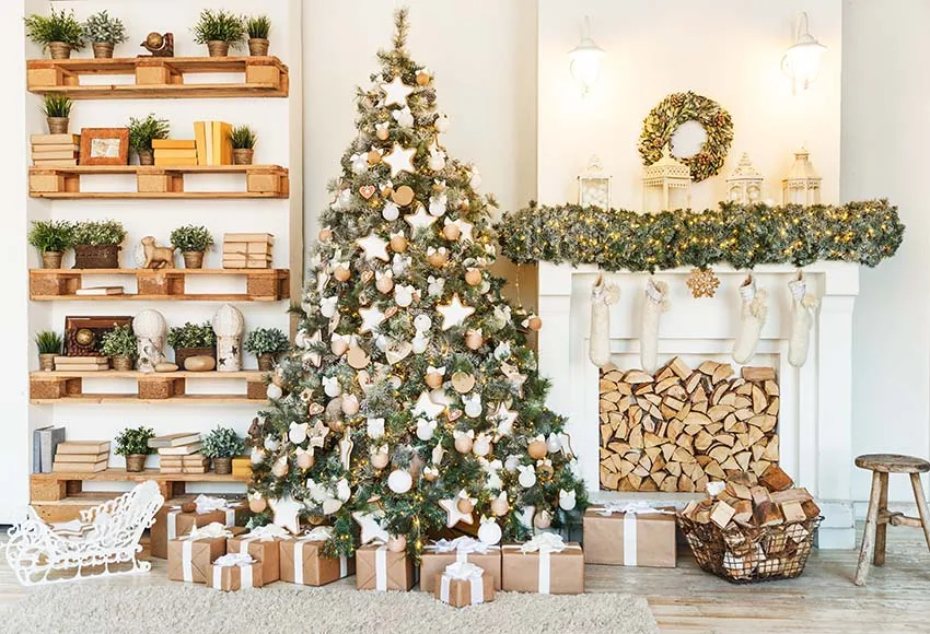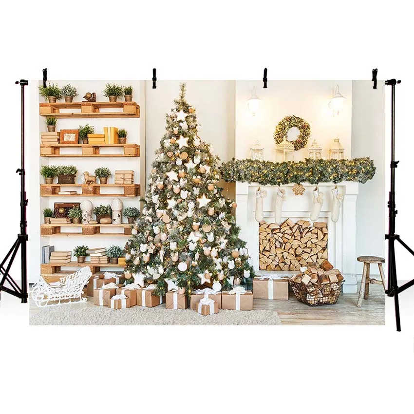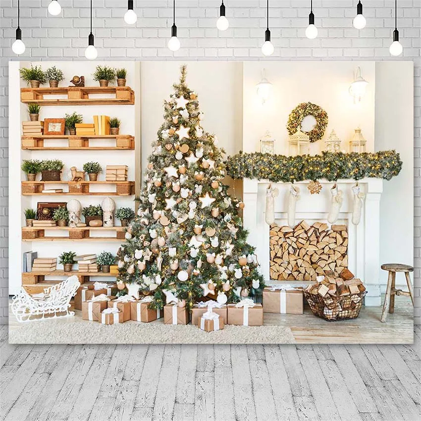 Фон для фотосъемки с рождественской елкой Avezano, зимний камин, подарок, венок, декор для фотостудии