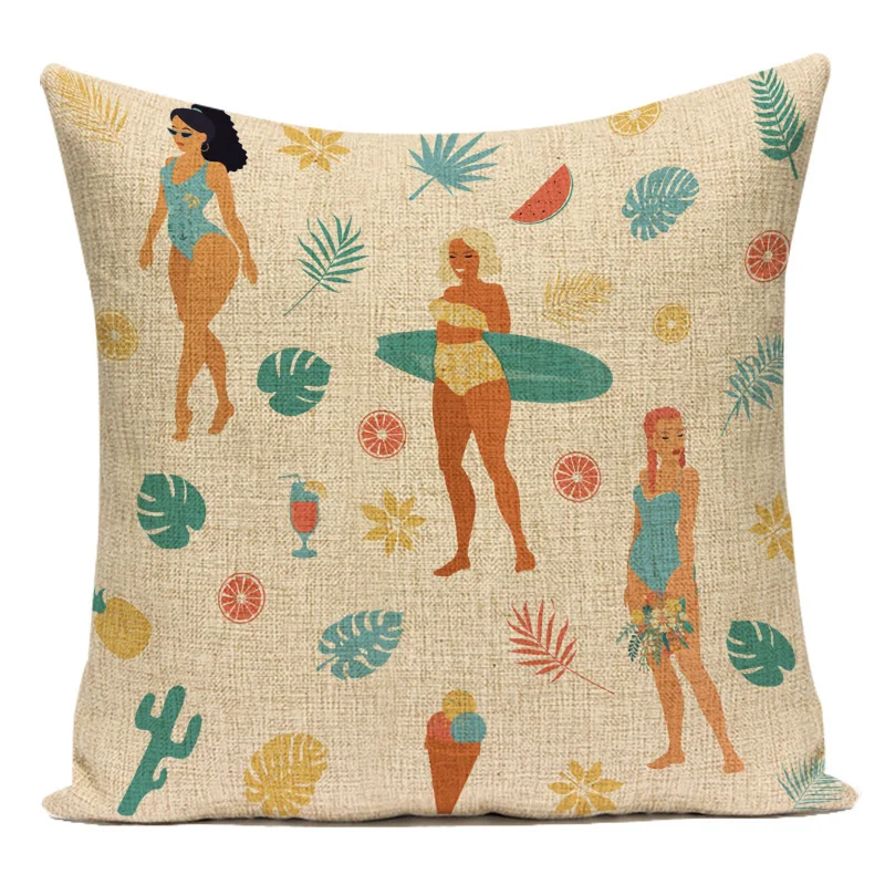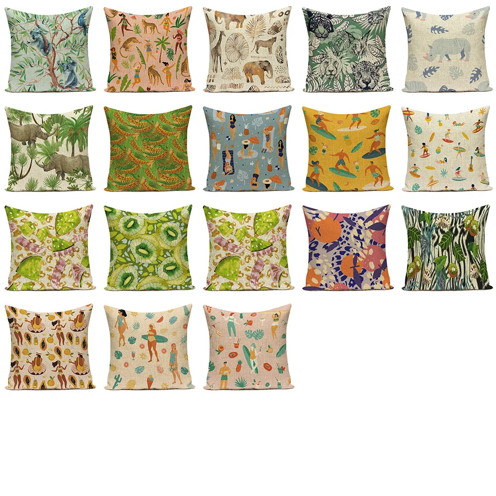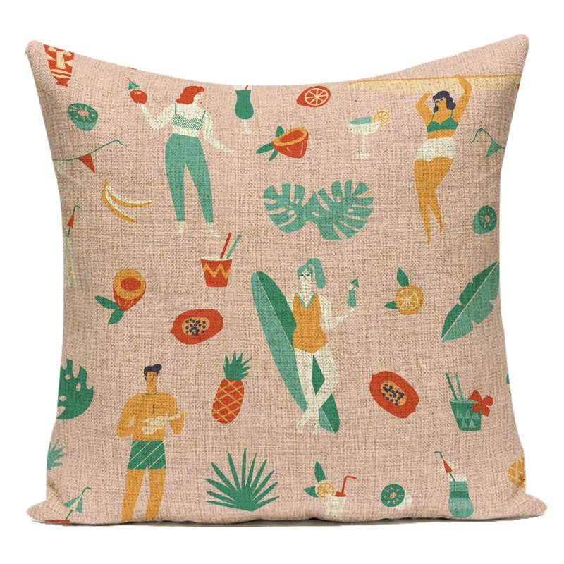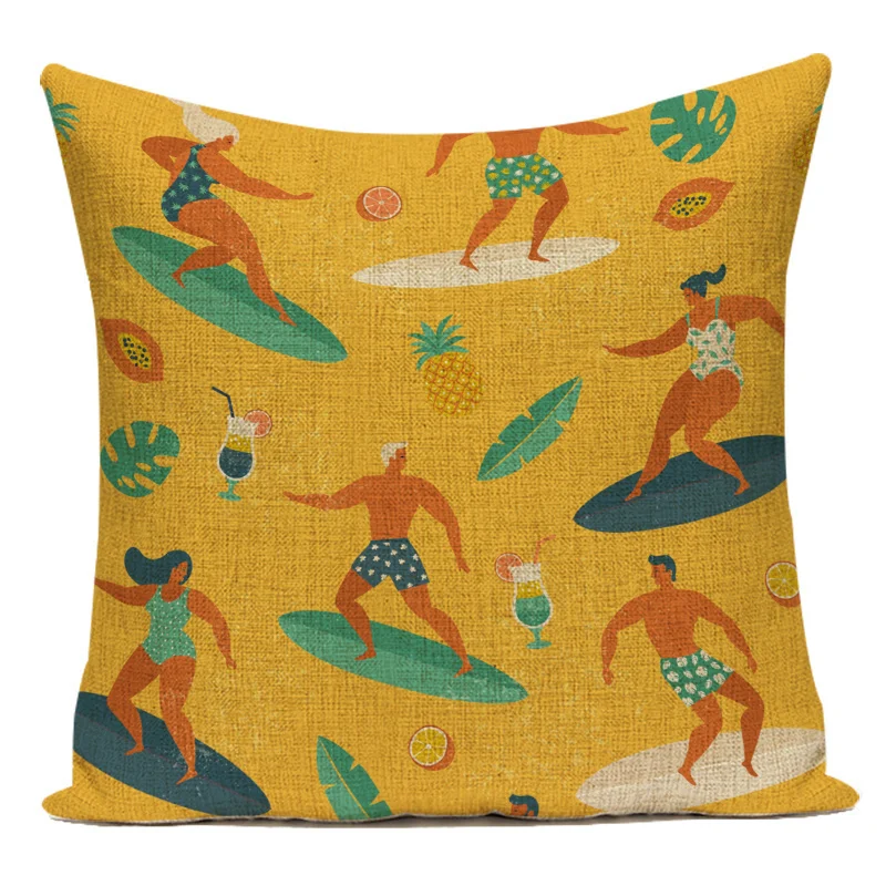Мультяшный пляжный мужской Чехол на подушку для серфинга Kiwi rhino, Чехол на подушку, стиль жизни, растительные подушки, постельное белье, для автомобиля, housse de coussin