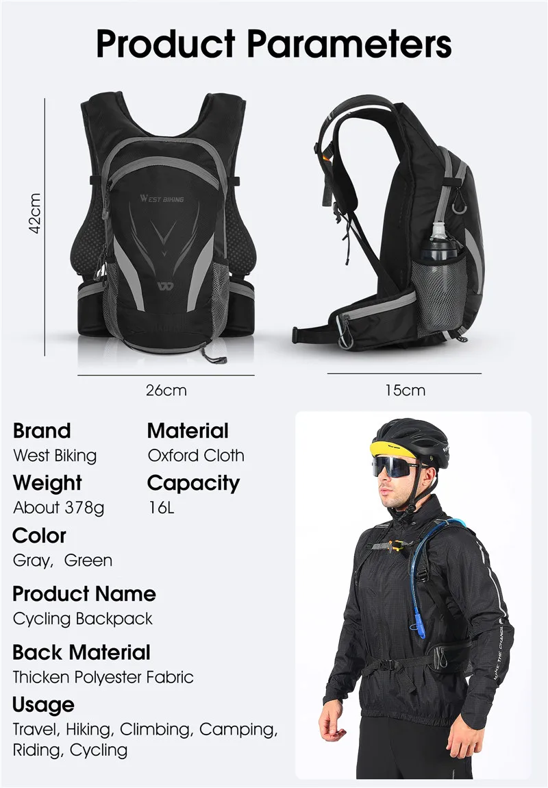 Рюкзак для велоспорта, 16 л, водонепроницаемый, Сверхлегкий, для альпинизма, походов, альпинизма, путешествий, WEST BIKING