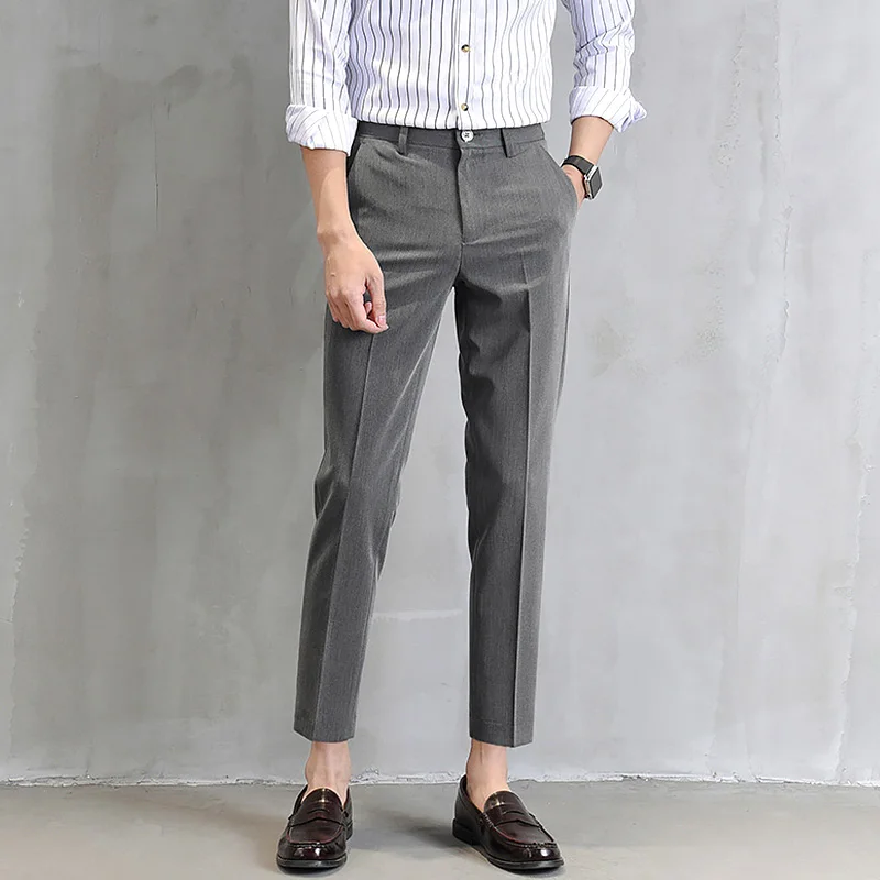 Мужские костюмные брюки, модные облегающие прямые брюки, деловые повседневные укороченные брюки с карманами, чистый черный, хаки, серые Костюмные брюки
