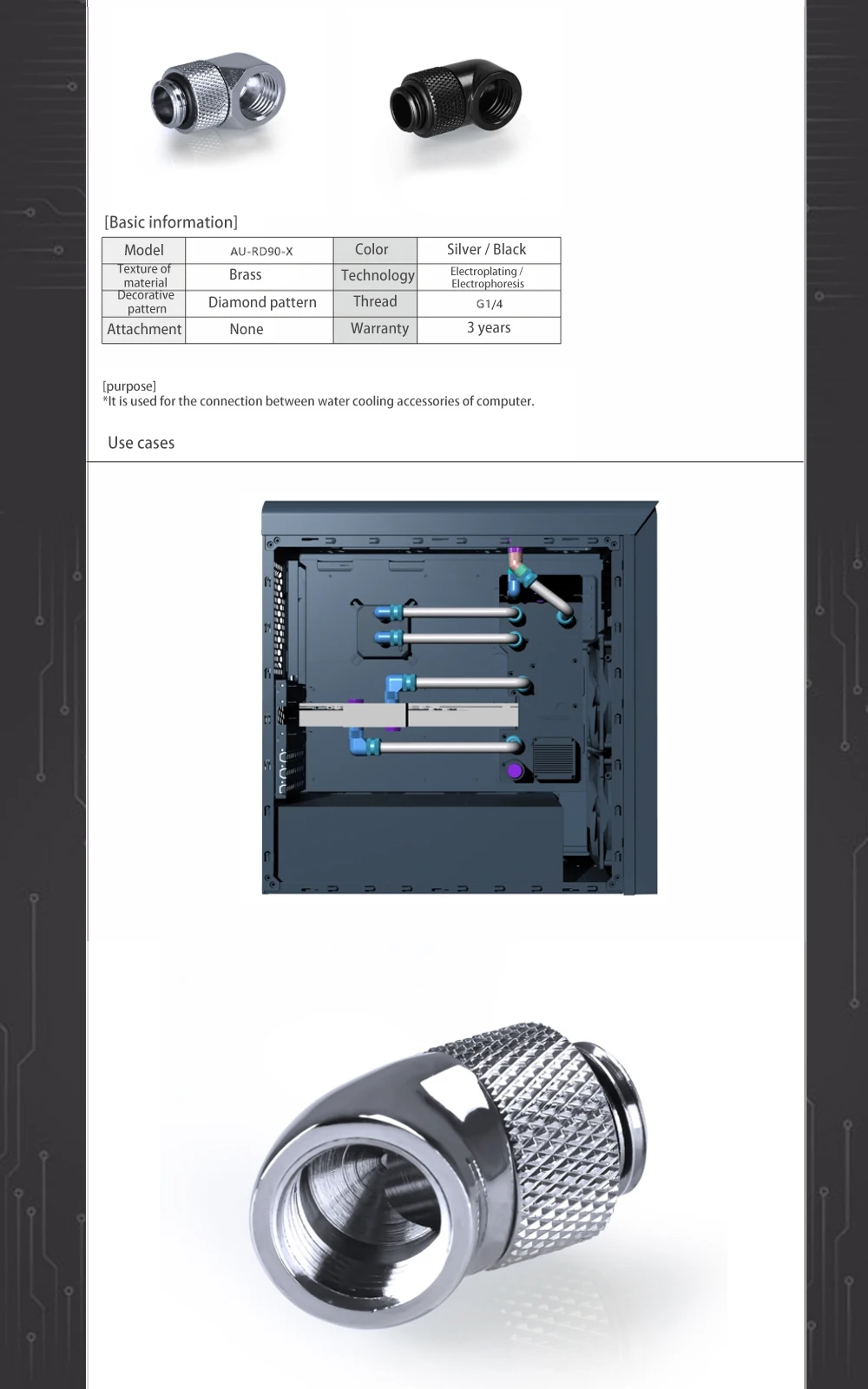 Водяное охлаждение Azieru, угловой фитинг, вращающийся на 4590 градусов, AU-RD45-XAU-RD90-X