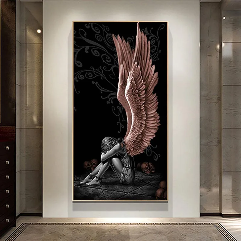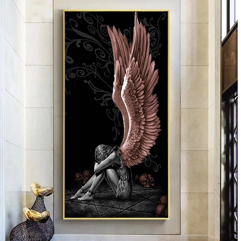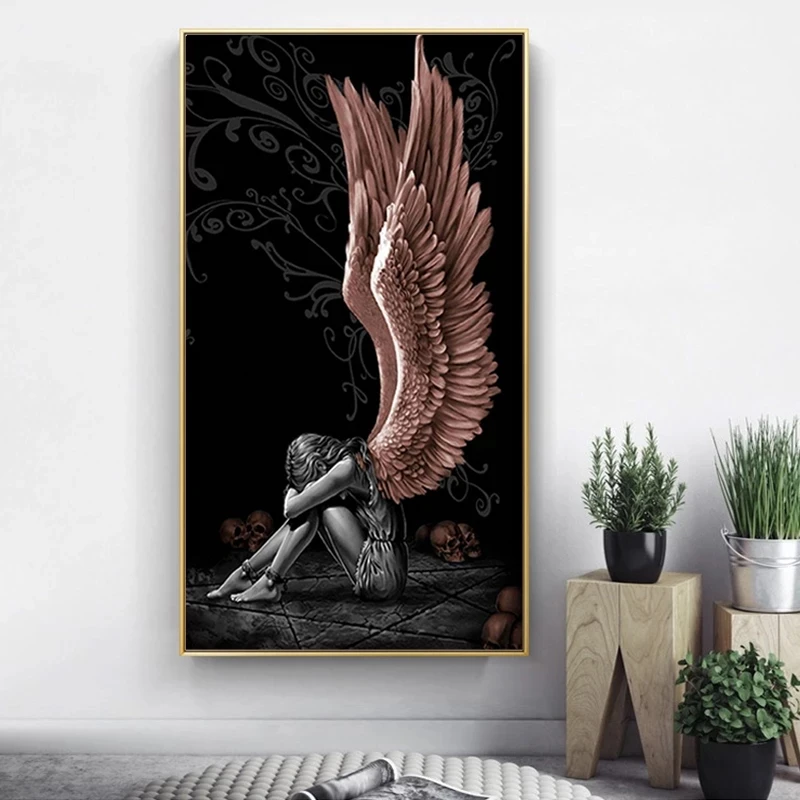 Картина на холсте с изображением ангелов и демонов, красные крылья, серые персонажи, постеры, принты, Скандинавская Настенная картина для гостиной