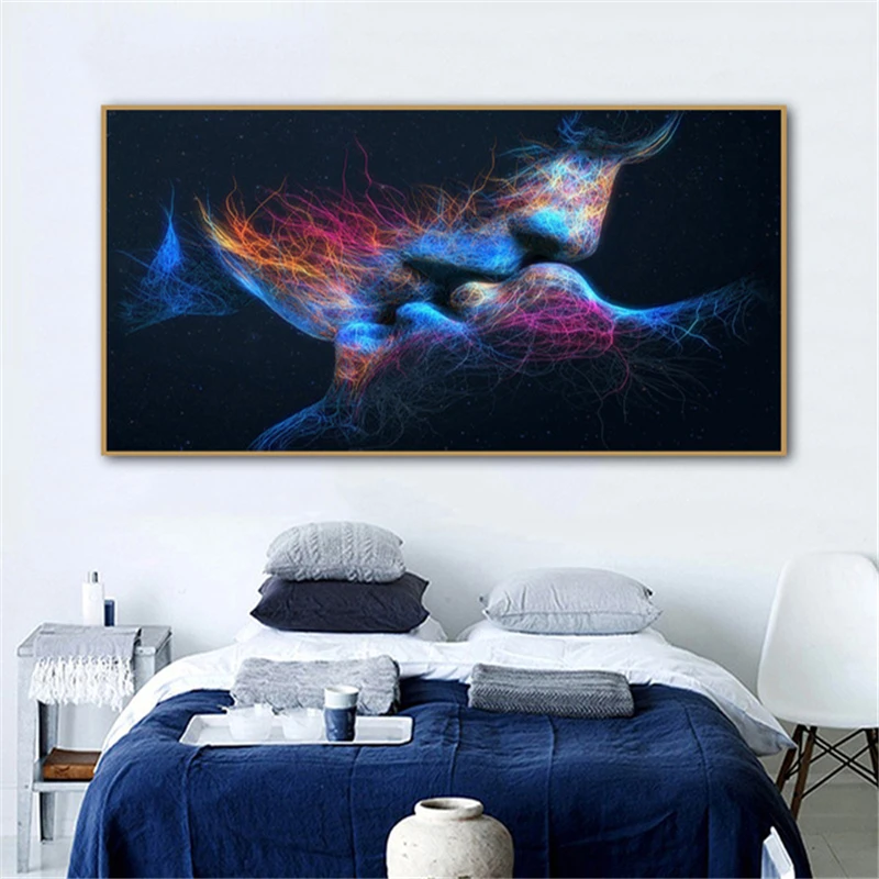 Картина на холсте, абстрактная картина маслом на холсте, постер с любовным поцелуем, картина для дома, художественное оформление комнаты