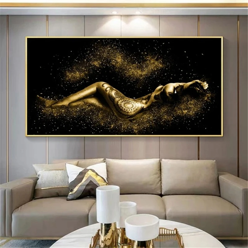 Африканское женское лицо сексуальные Золотые губы холст настенные к...