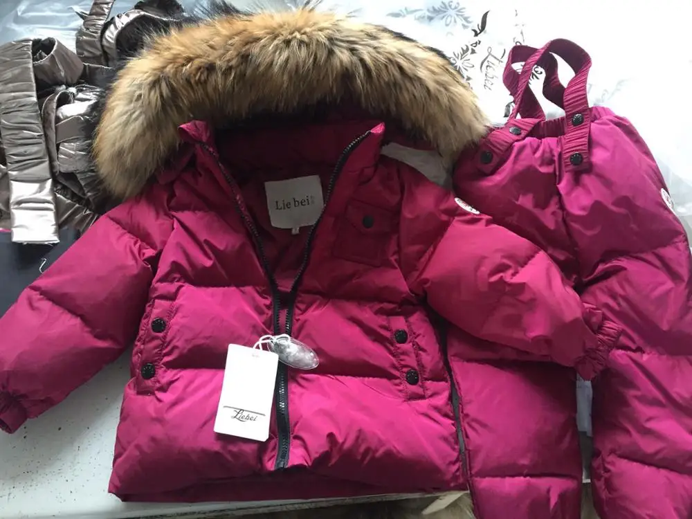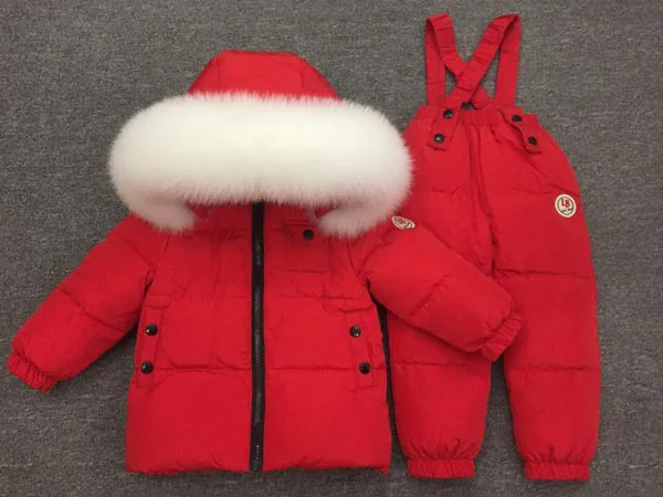Детский костюм с пуховиком зимний лыжный костюм для мальчиков и девочек водонепроницаемая ткань с воротником из натурального меха до-30 градусов