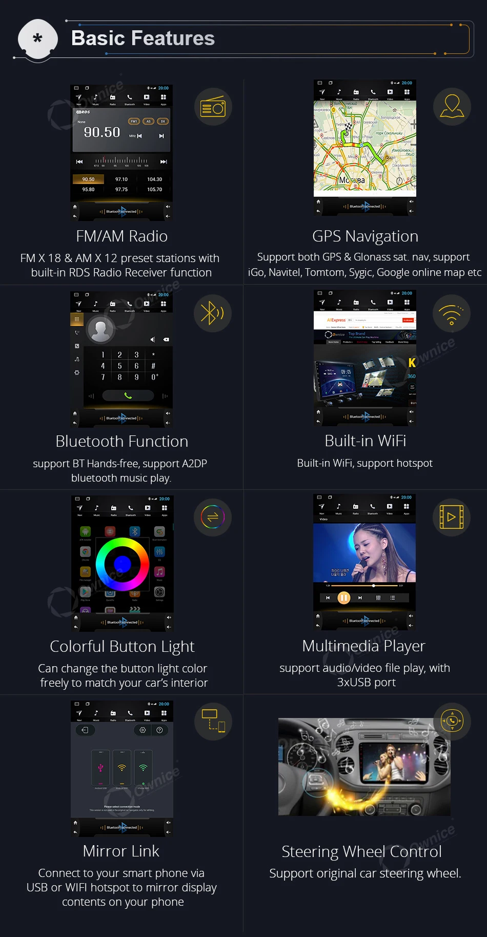 Special FeaturesRadio tuner/Capacitive screen/Bluetooth/TV/Built-in GPS
