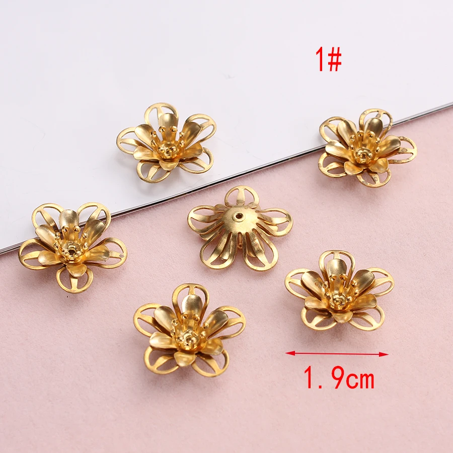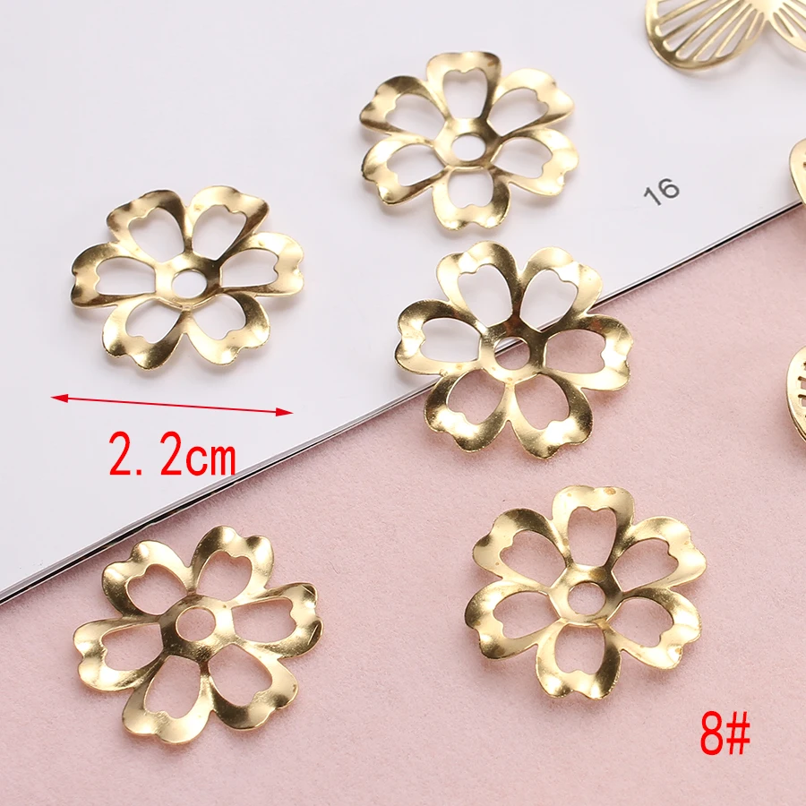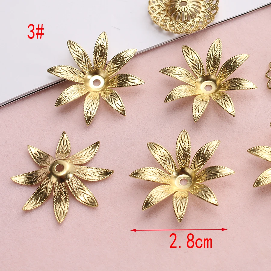 Бусины из меди и металла для украшений сделай сам, металлические филигранные бусины с цветами, шапочки золотистого цвета для Короны Волос, ювелирных изделий, комплектующие для альбом для вырезок для рукоделия, 20 шт.партия