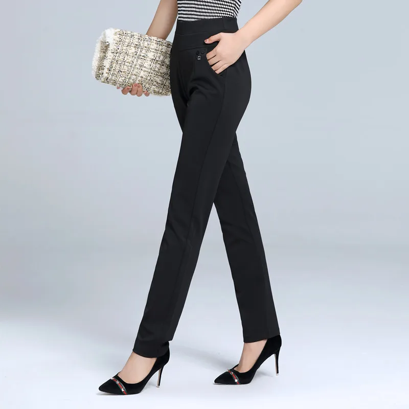 Женские брюки, весна-осень 2020, прямые брюки, Узкие повседневные женские брюки-стрейч, черные модные джинсы, офисные брюки, размера плюс