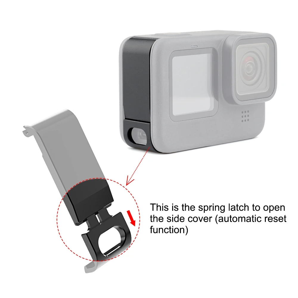 PULUZ металлическая крышка для аккумулятора с боковым интерфейсом для GoPro HERO9, черная, сменная боковая крышка для аккумулятора с USB-портом